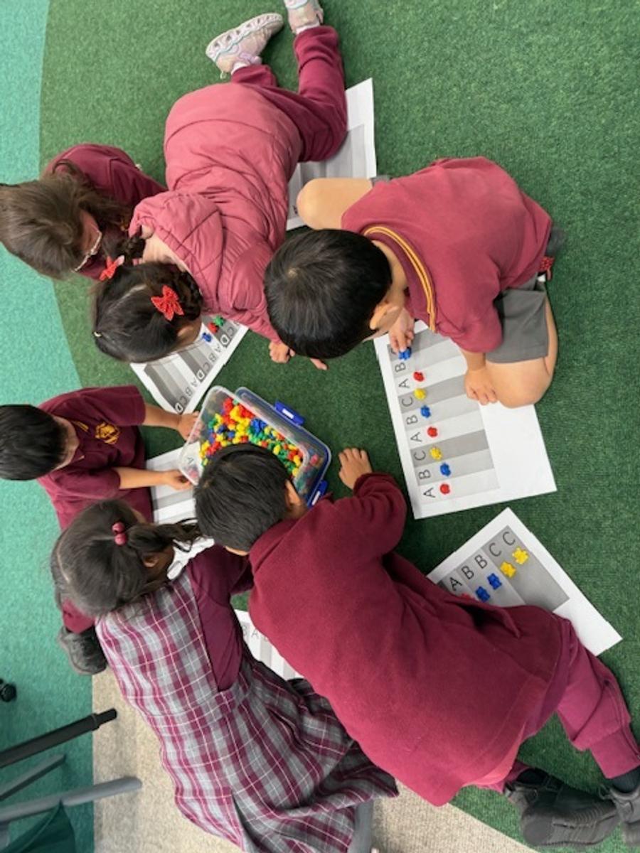 Our budding mathematicians have been busy exploring patterns! We have been learning to identify the unit of repeat in a pattern and create our own using colours, shapes, actions and even drum sticks! This hands-on learning is helping students build a strong foundation in algebraic thinking in a fun and musical way.