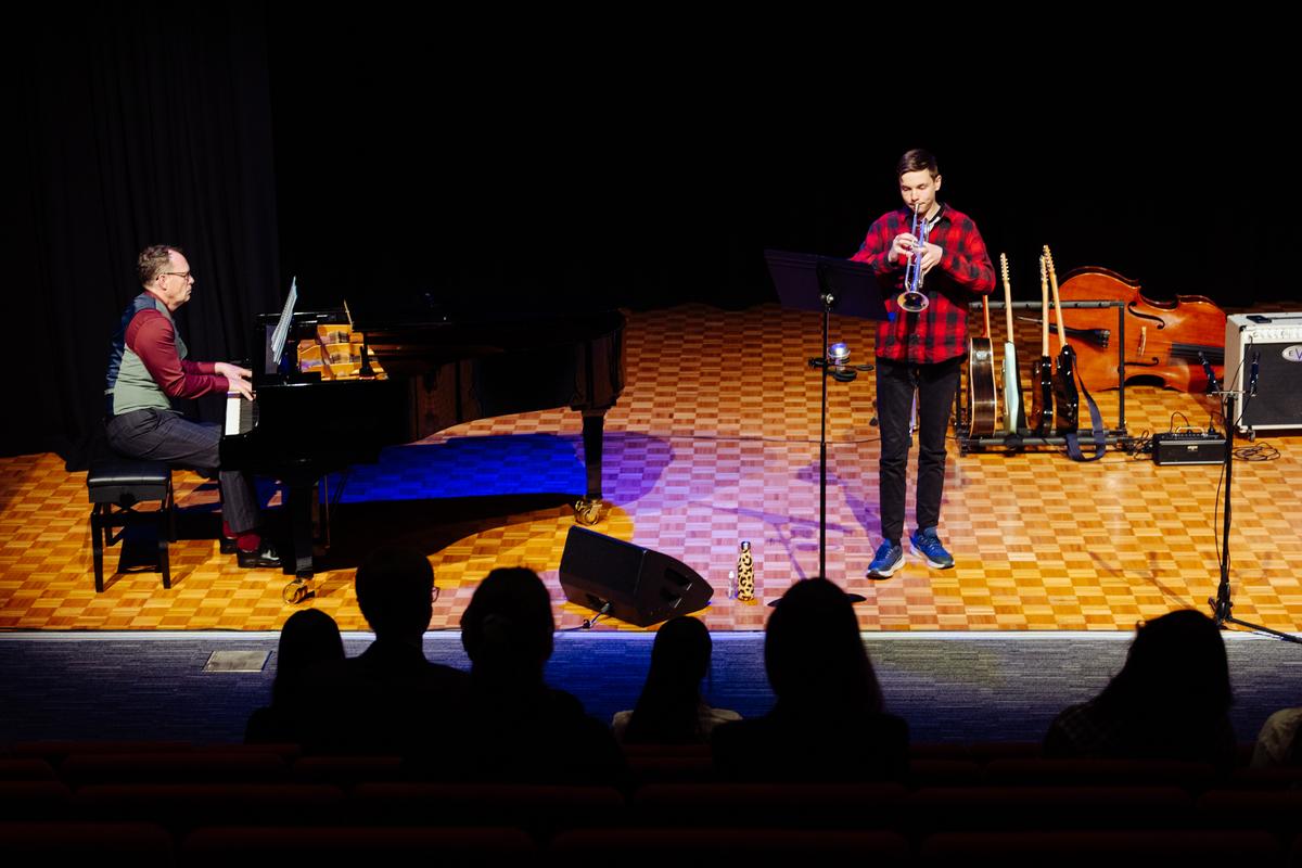 Three nights later, the VCE Unit 4 Music students highlighted skill and musical interpretation in a variety of styles through their performances. Each student also had to present an ensemble piece as part of their program. Jeremiah L (11.13) started the evening with his guitar recital, performing a breadth of styles and joining Mr McCormick on drums for his ensemble piece. Daniel B (12.7), accompanied by Mr Clarke, performed on the trumpet, featuring everything from Mozart to jazz. Abtin TB (12.10), also presented his program on guitar, featuring a highly technical skill set and combining with Mr Van Pinxterin on double bass, as well as some other highly skilled musicians. Alannah M (12.10) concluded a wonderful evening of music, highlighting her ability to interpret a variety of songs with the appropriate style and nuance. Caleb P (10.4) and Jessica S (8.7) joined her for an ensemble piece which entertained the audience and brought the evening to a fitting finale. We wish all four students the very best and Godspeed as they head into their examinations.