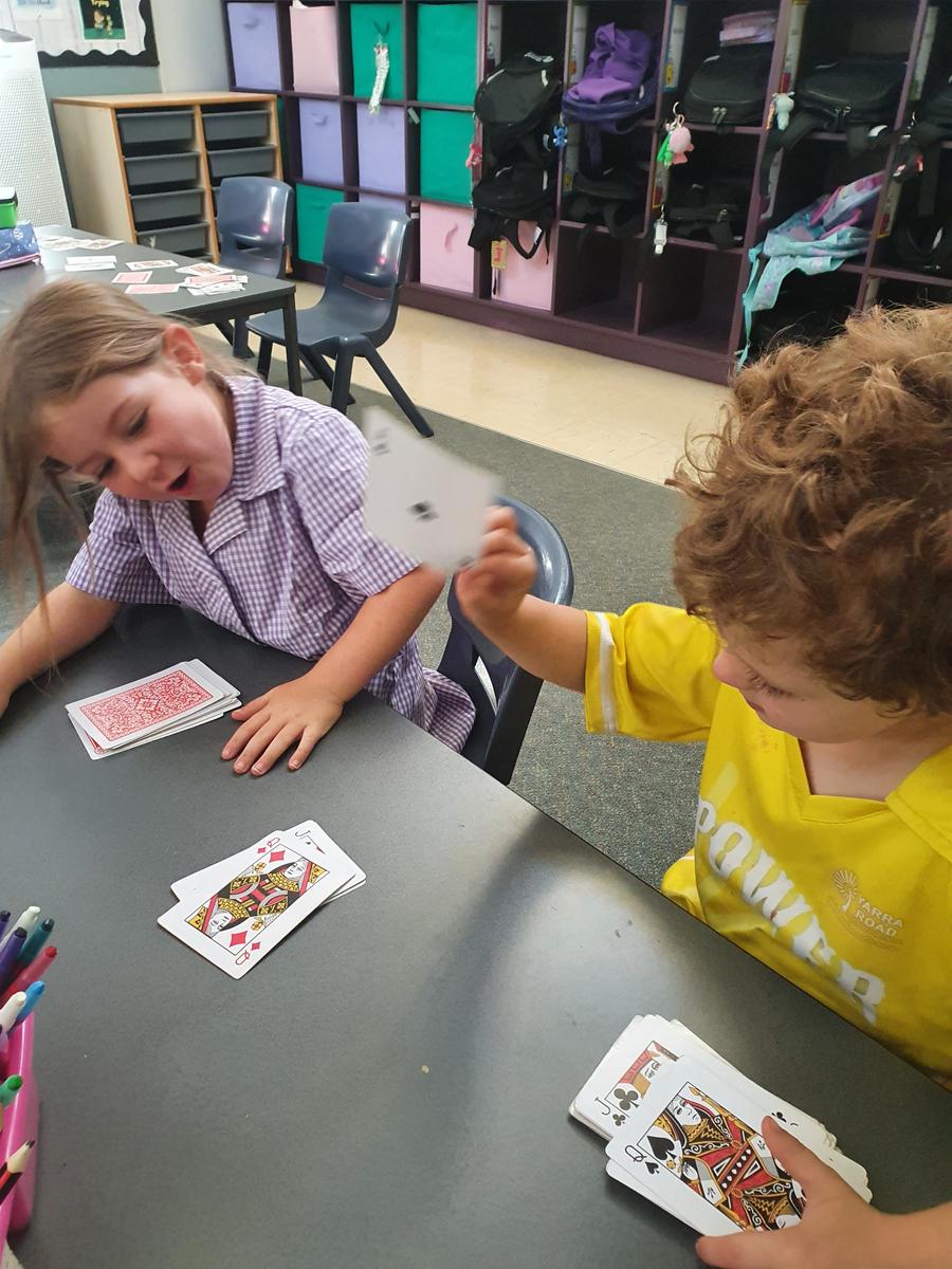In Maths, we have been learning about substituting and recognising number arrangements using familiar patterns and pictures. This means knowing the number, rather than counting each dot on a dice or card. This week we have been looking at collecting data and different types of graphs, such as picture graphs, bar graphs, and column graphs. We have been learning how to sort items into different groups. We have been learning about tally marks and asking yes/no questions to collect information, such as 'Do you have a pet?', 'Do you like ice-cream?', and 'Do you have blue eyes?'.