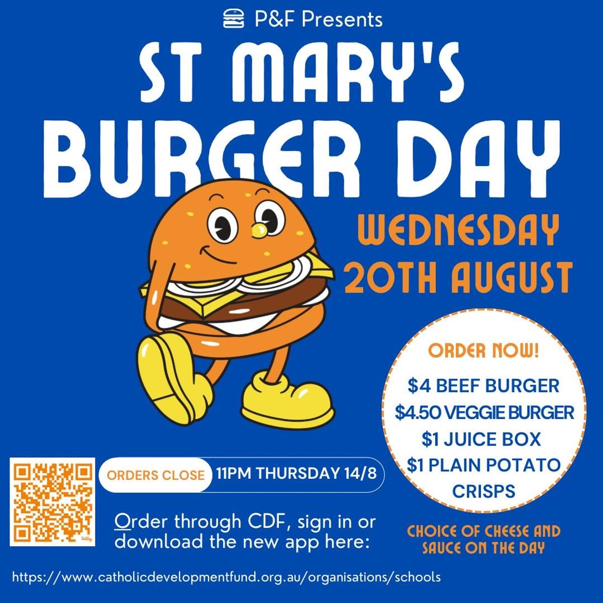 On Wednesday 20 August there will be a hot food day with Burgers on offer. Please order through the CDF App. Children can choose if they would like sauce and/or cheese on the day. If you need any help placing an order please get in touch with us before the cut off date of Thursday 14 August.
