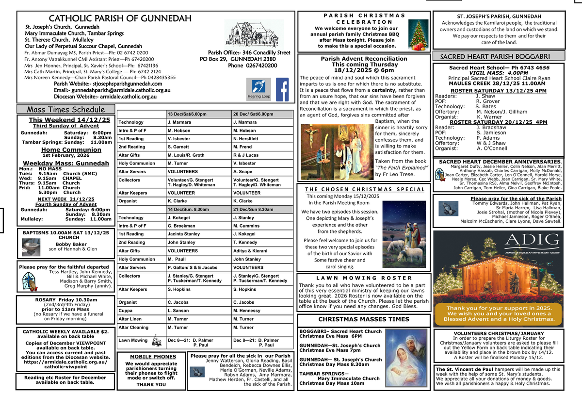 - Rite 2 Reconciliation 11.40am St Joseph’s Church, BBQ lunch shortly after 12:30pm.