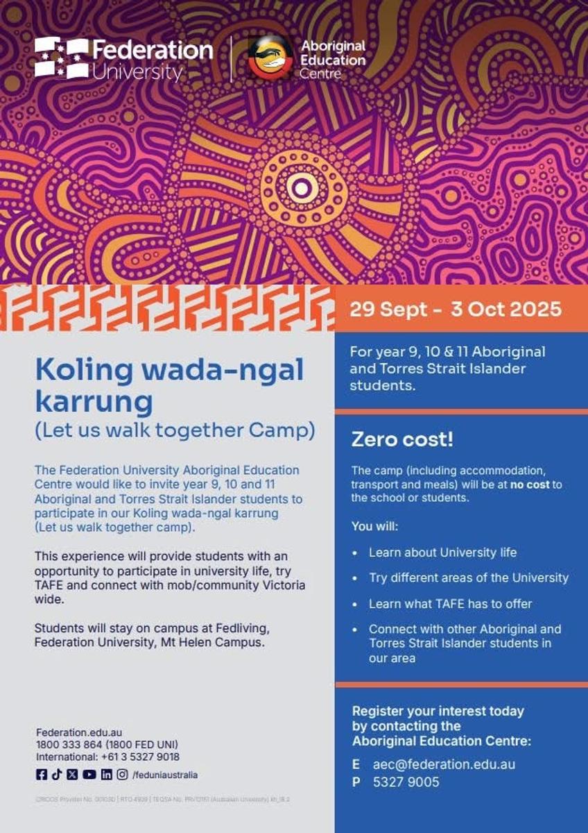 Federation University has their yearly Koling Wada-ngal Kurrung Camp coming up next school holidays!!