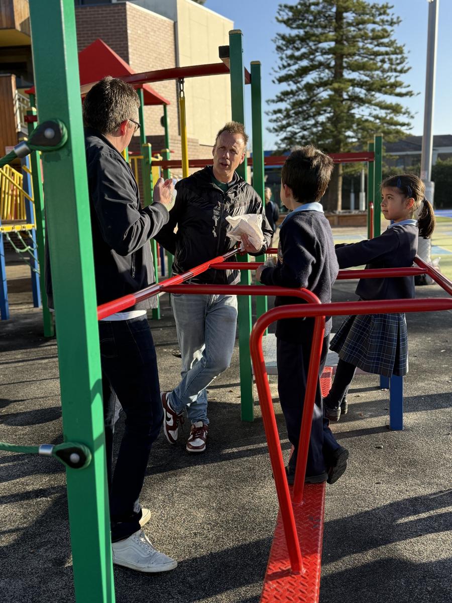 We had a superb morning, weather-wise, for Friday's Fathers' Day Breakfast. Many thanks to the mums who organised the food and coffees. The dads had ample time to socialise with the other dads and play some sport with their children. At 8.20am, the classrooms were opened so the children could proudly show their dads around their place of learning.