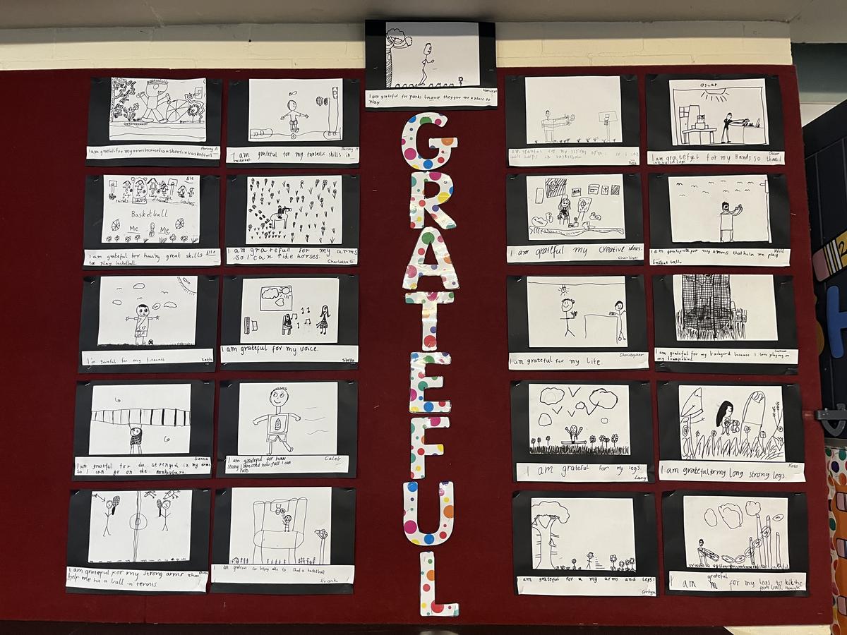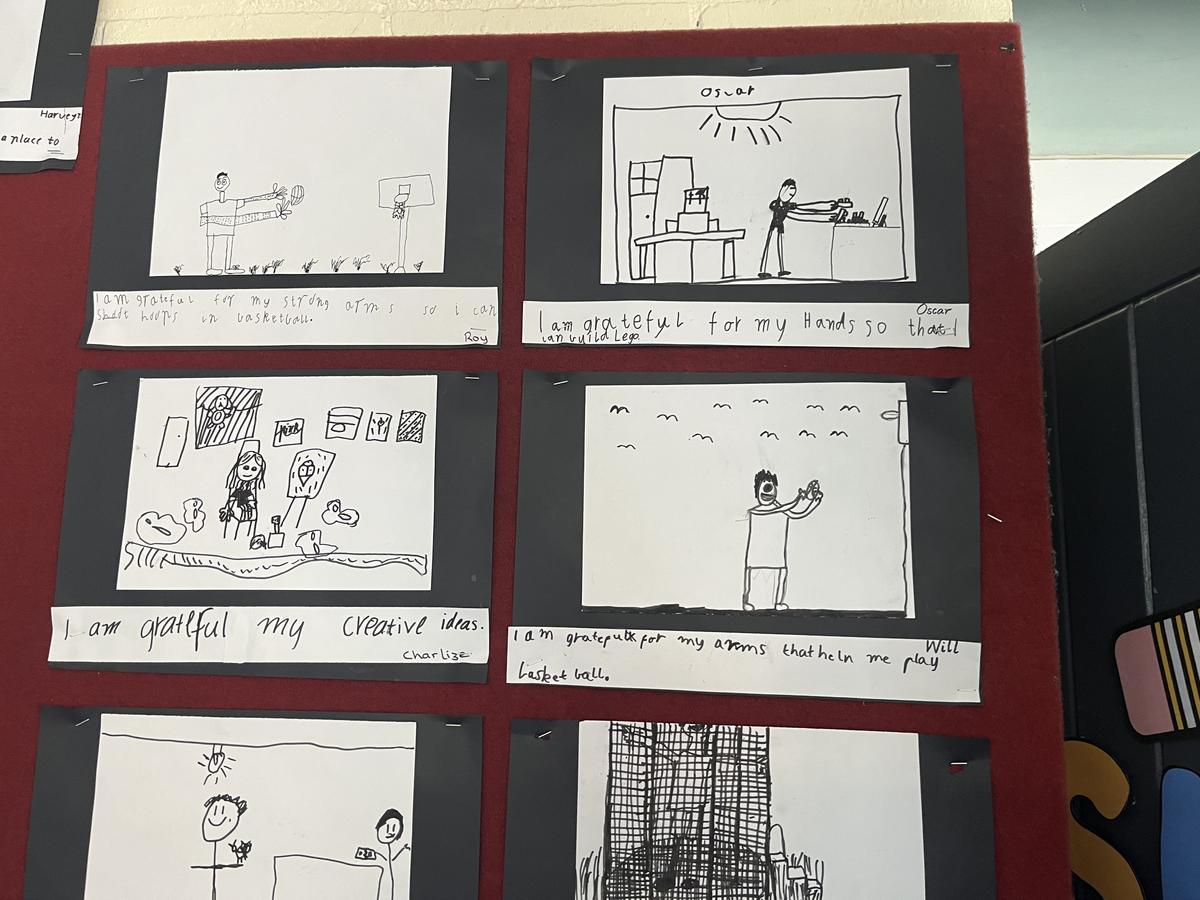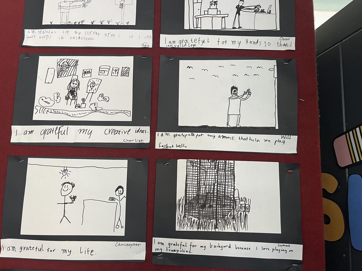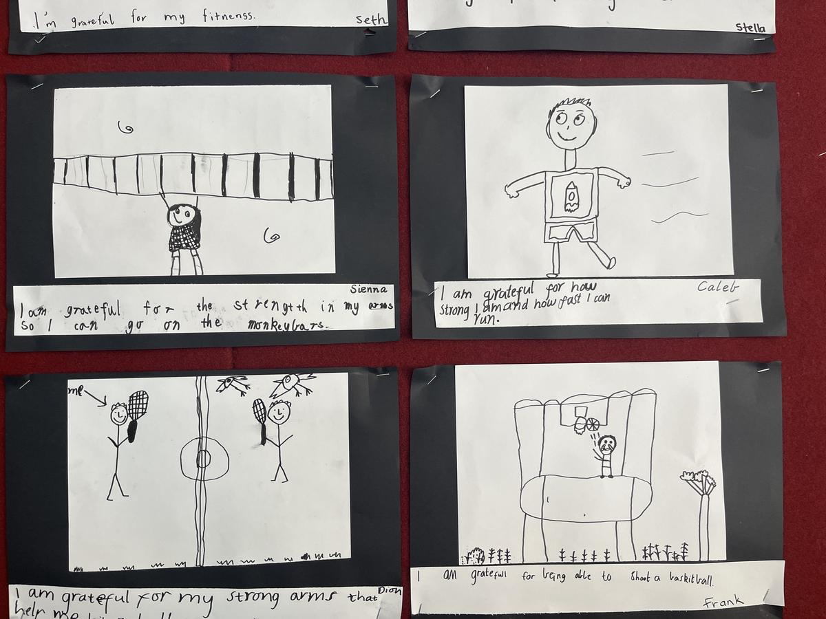 This term, our focus on gratitude has invited us to pause and reflect more deeply on the importance of appreciation—not only for the people and blessings around us, but also for ourselves. We have been learning that our bodies are precious gifts from God, created with care and purpose. By taking the time to recognise and value the uniqueness of who we are, we grow in both thankfulness and respect for the life we have been given. This gentle reminder encourages us to nurture a positive outlook and to care for ourselves in ways that honour the wonderful gift of life God has entrusted to us. We used black fine liners to create a detailed yet simple picture of our bodies. We also created sentences of gratitude.