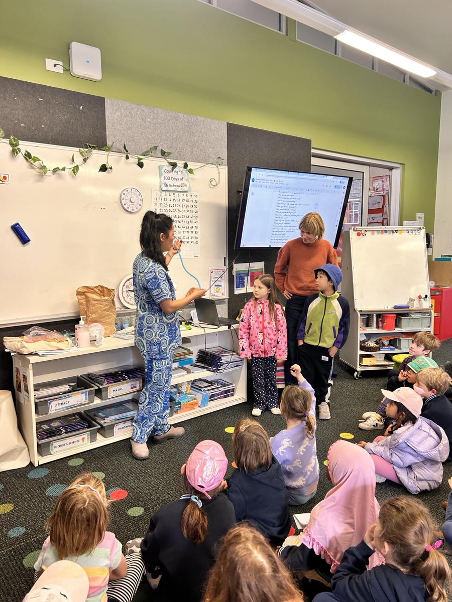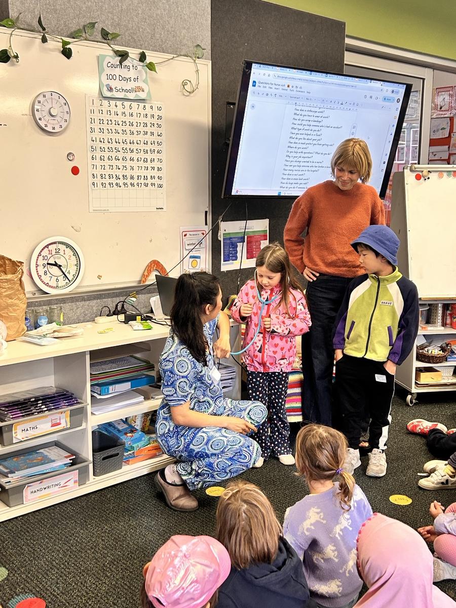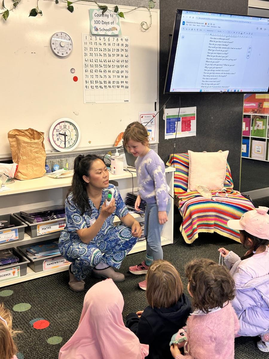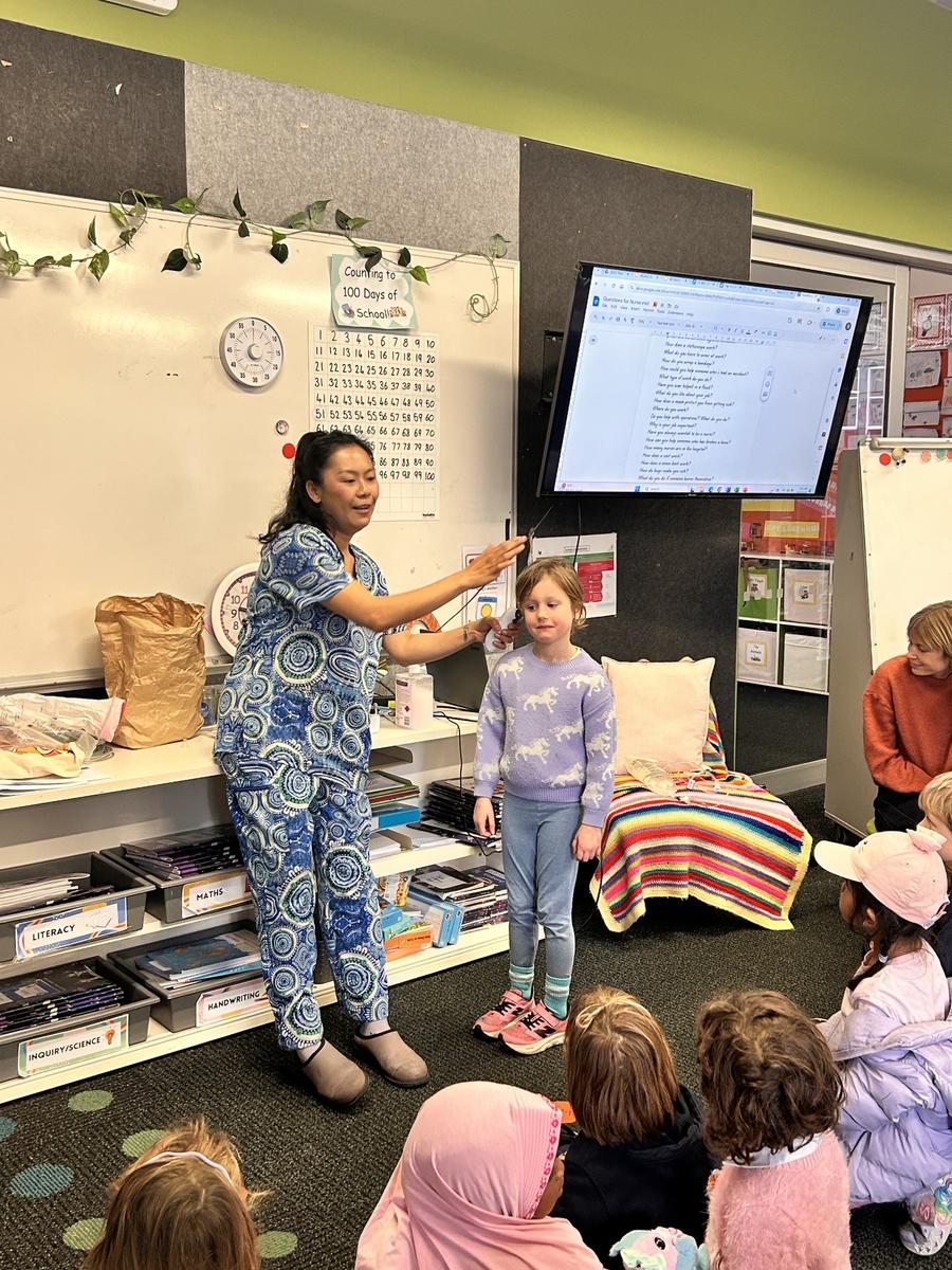 This week Foundation welcomed Gabby, Iska’s mum, into our classroom. Gabby is a nurse who spoke to us about her job, answered our many curious questions and showed us some of the special things nurses use. The students loved the visit and learned a lot about how nurses care for people in our community.
