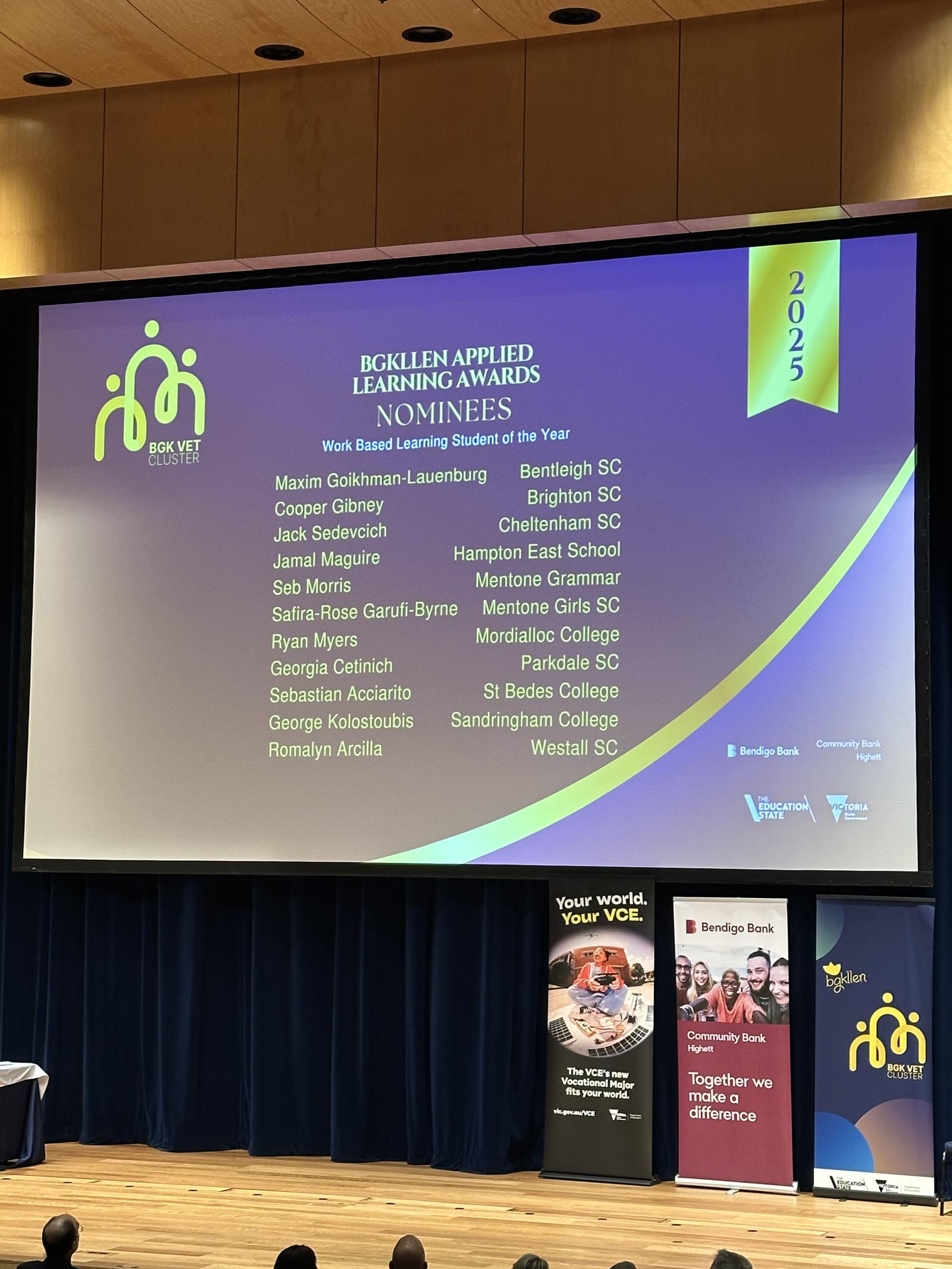 On Tuesday 14 October, the Bayside Glen Eira Kingston Local Learning and Education Network held their Applied Learning Awards Ceremony at St Leonard's College.
