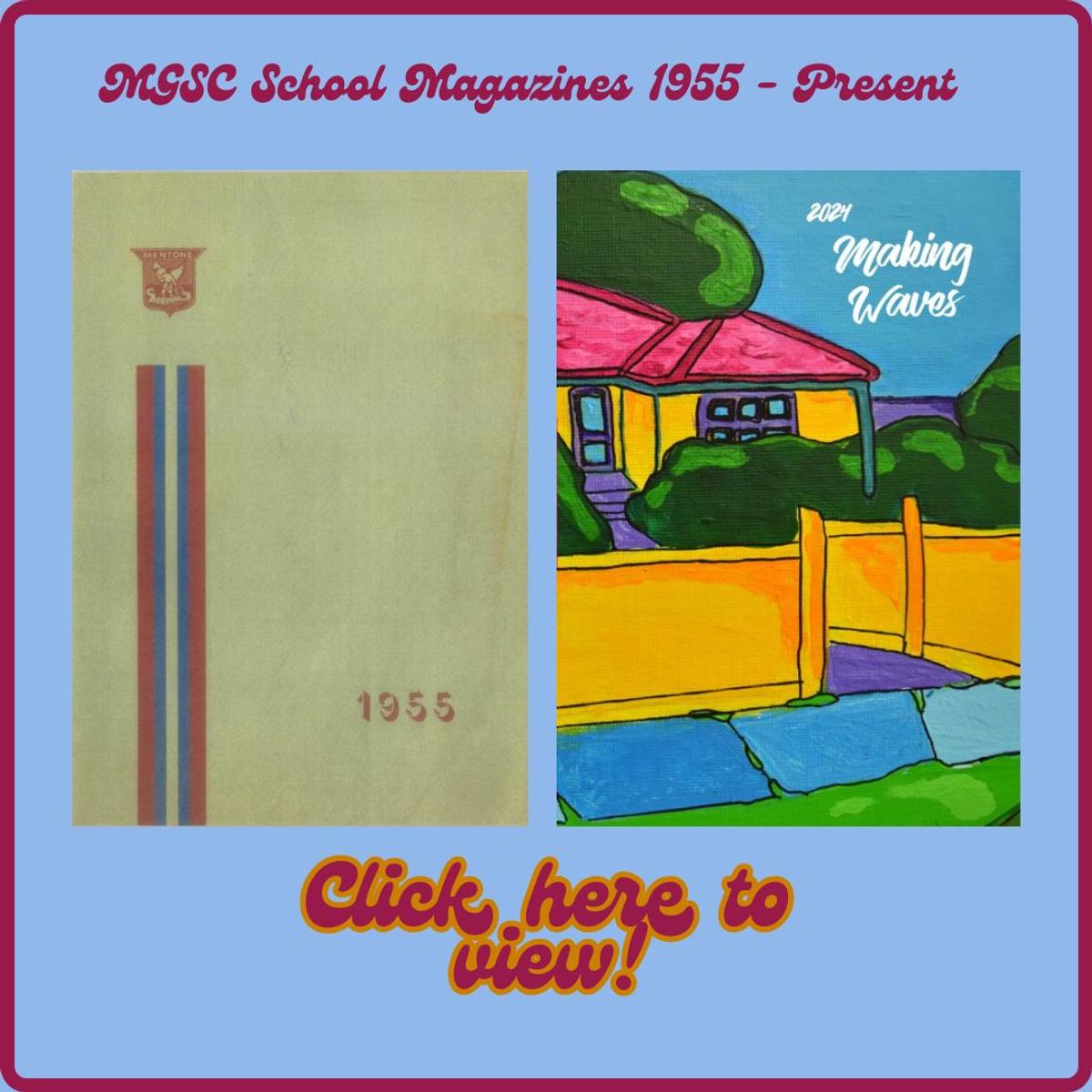 Thanks to a generous donation from the Parents and Friends Association, MGSC has recently digitized videos and school magazines from the archive in anticipation of the 70 Years Anniversary this year. You will find the entire catalogue of yearbooks from 1955 -2024, available to view via the library website here. Videos from the archive, showcasing class photos through the years, building developments and past staff members are now playing on the Library Screen.