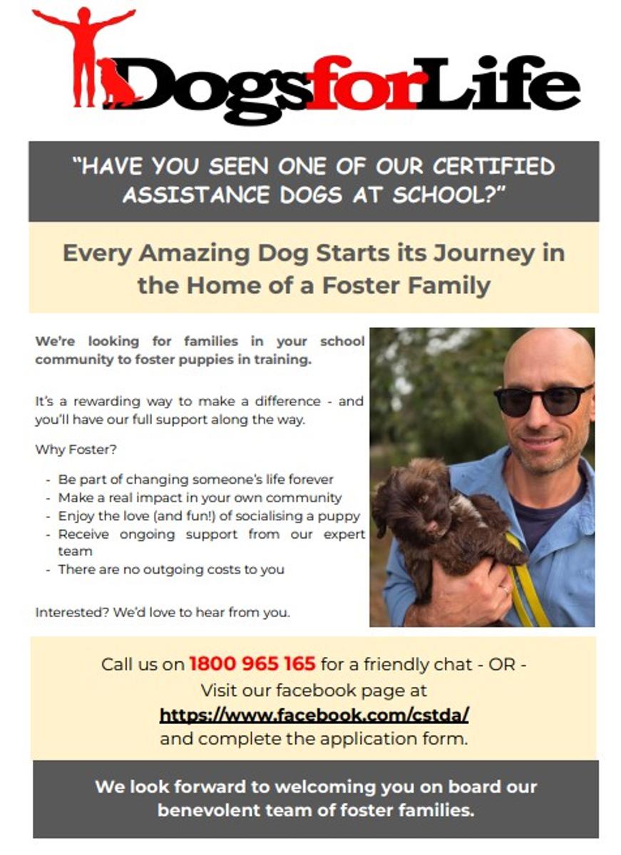 Dogs for Life are seeking families to foster families and reached out to MGSC as we know how special their work is.