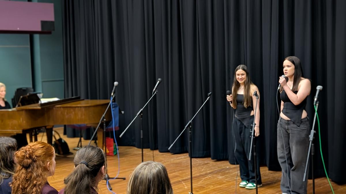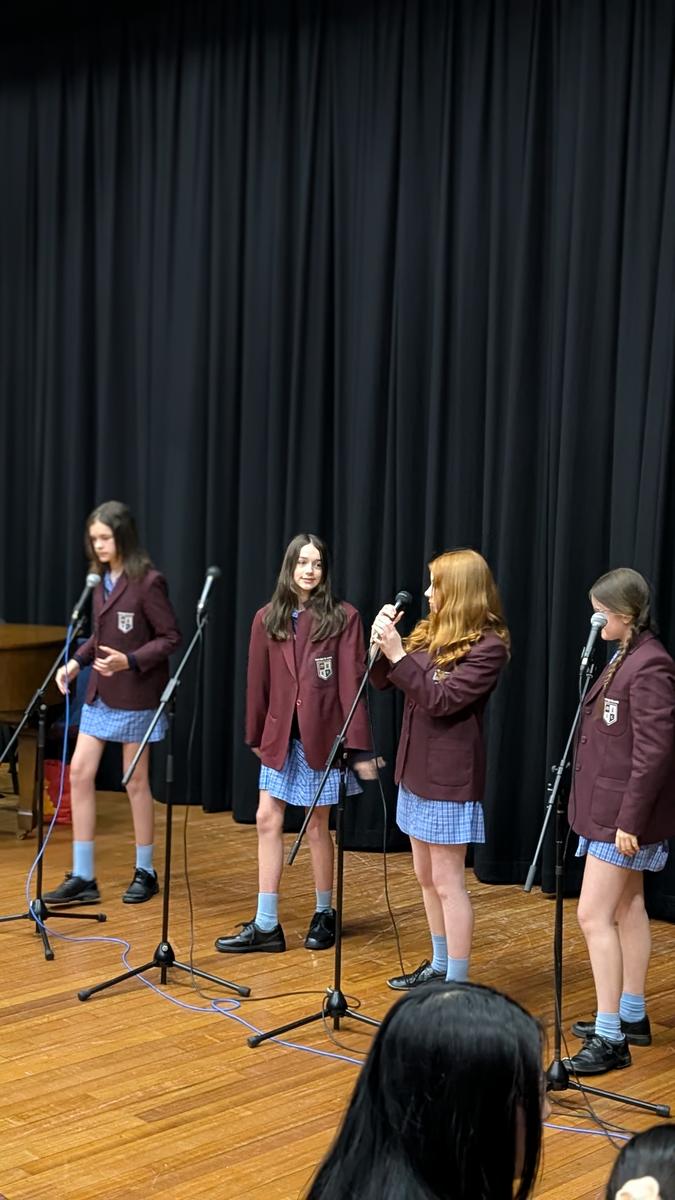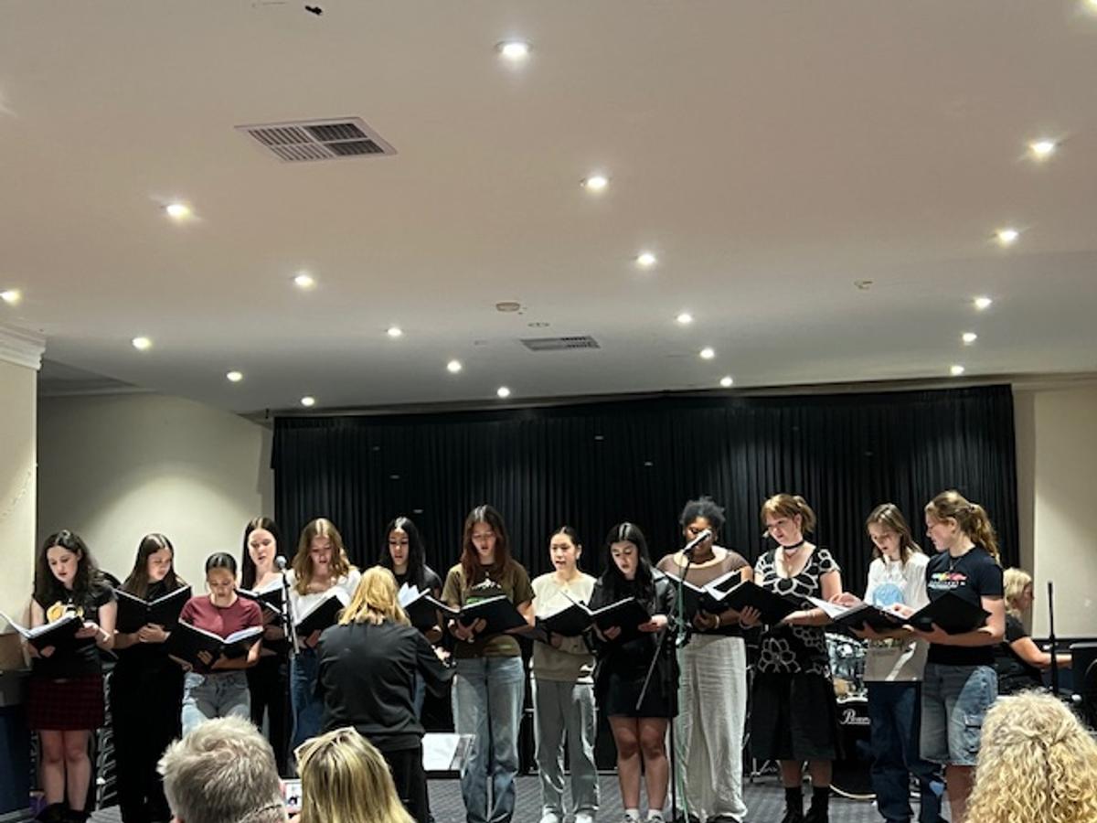 Songs from various genres, starting with the brave Year 7 duet (Tia Allan and Evie Daley) going right through to Year 12s, entertained the audience of supportive family members and friends. The three large groups of Year 8 students did very well incorporating their solos into their song presentations. There were also some duets, like Year10s Ely Ross and Verity Goudge singing 'Until I Found You' with beautiful harmonies and Year 9s Keira Nguyen and Verity Weetman who sang us the beautiful song 'That Would Be Enough' from 'Hamilton'.