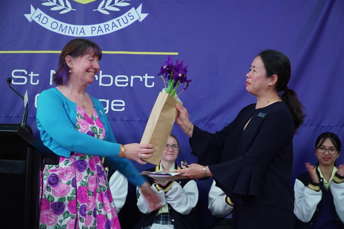 At our assembly on Wednesday, many students were acknowledged for the participation and achievements throughout the term. We were blessed to have present, Mr Chris Callus (WA & National President of Australian Association for Religious Education) and Dr Natalie Leitao who presented an award to Ethan Foo for placing second in a logo competition.