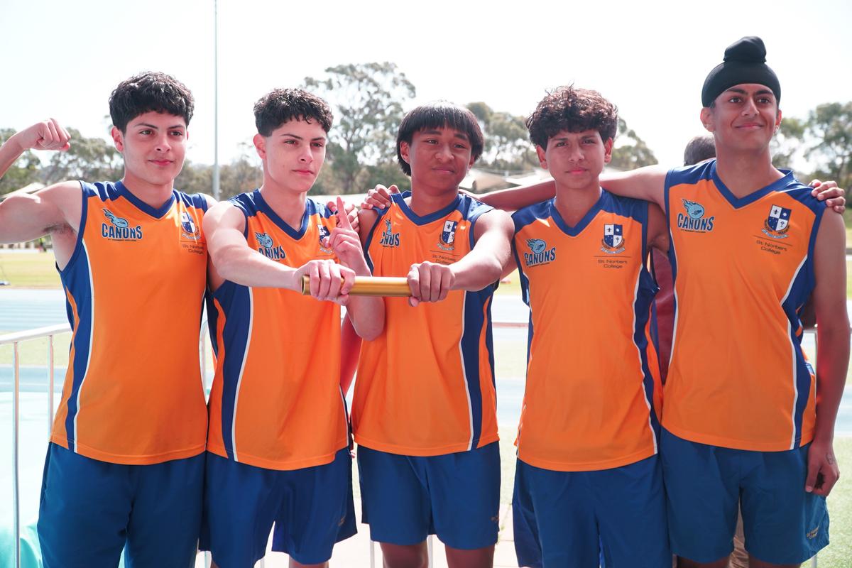 Year 9 Boys 4x100m Relay Team winning in a time of 49.09