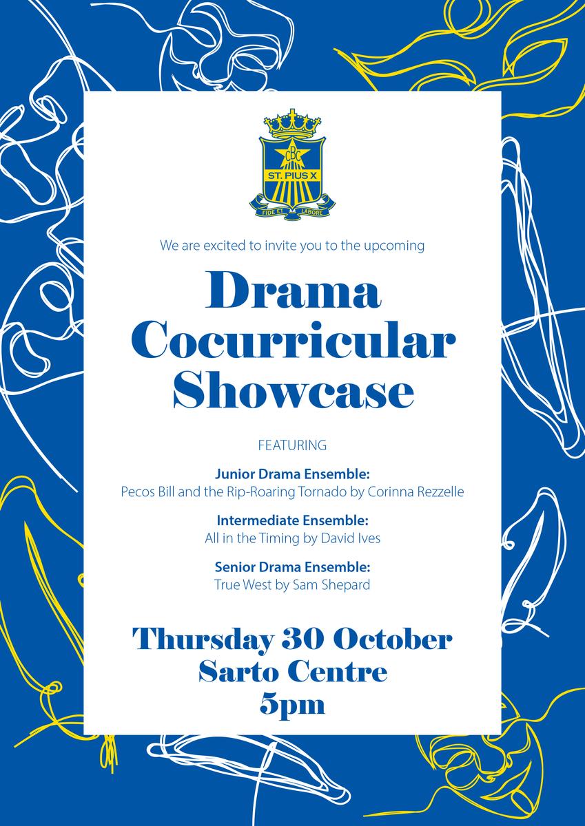 Drama Cocurricular Showcase – Thursday 30 October - Junior, Intermediate and Senior Drama Ensembles, Sarto Centre, 5:00 pm. Car park will be open for parking. Please use entrance via Kirk St