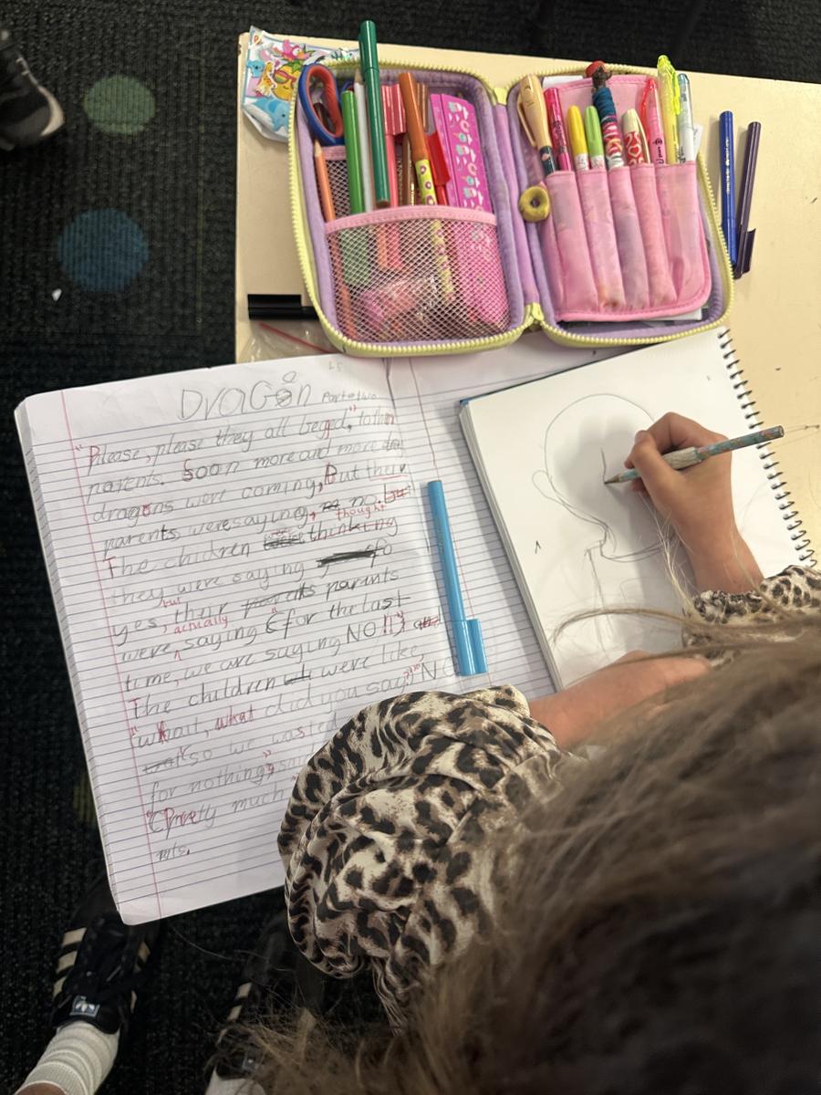 In between our Literacy Skills and Text studies unit of work , 1/2S has been working on Free Choice Writing. In Free Choice Writing we collaborate and write stories together, we make and illustrate books, and we learn how to publish our drafts on iPads. 1/2S gets very excited when Sam offers a Free Choice Writing session.