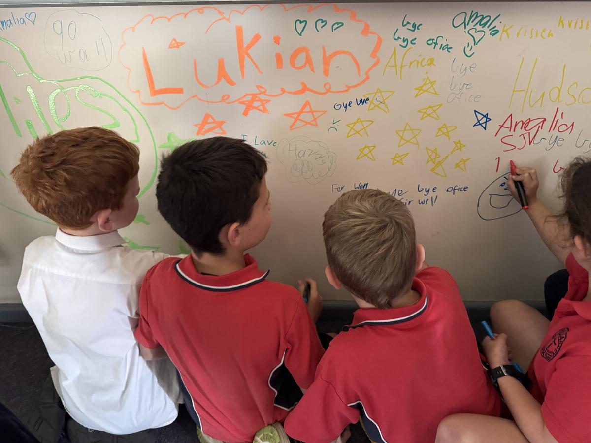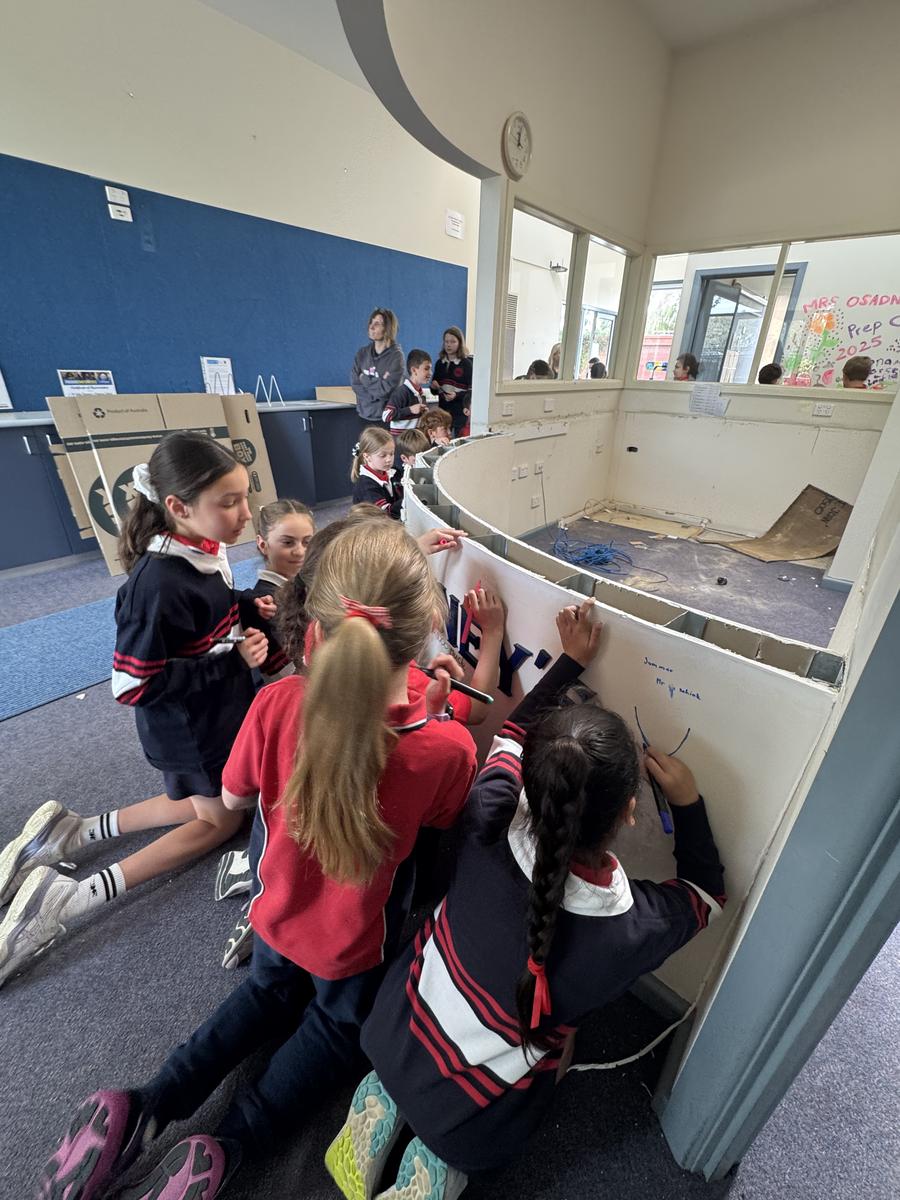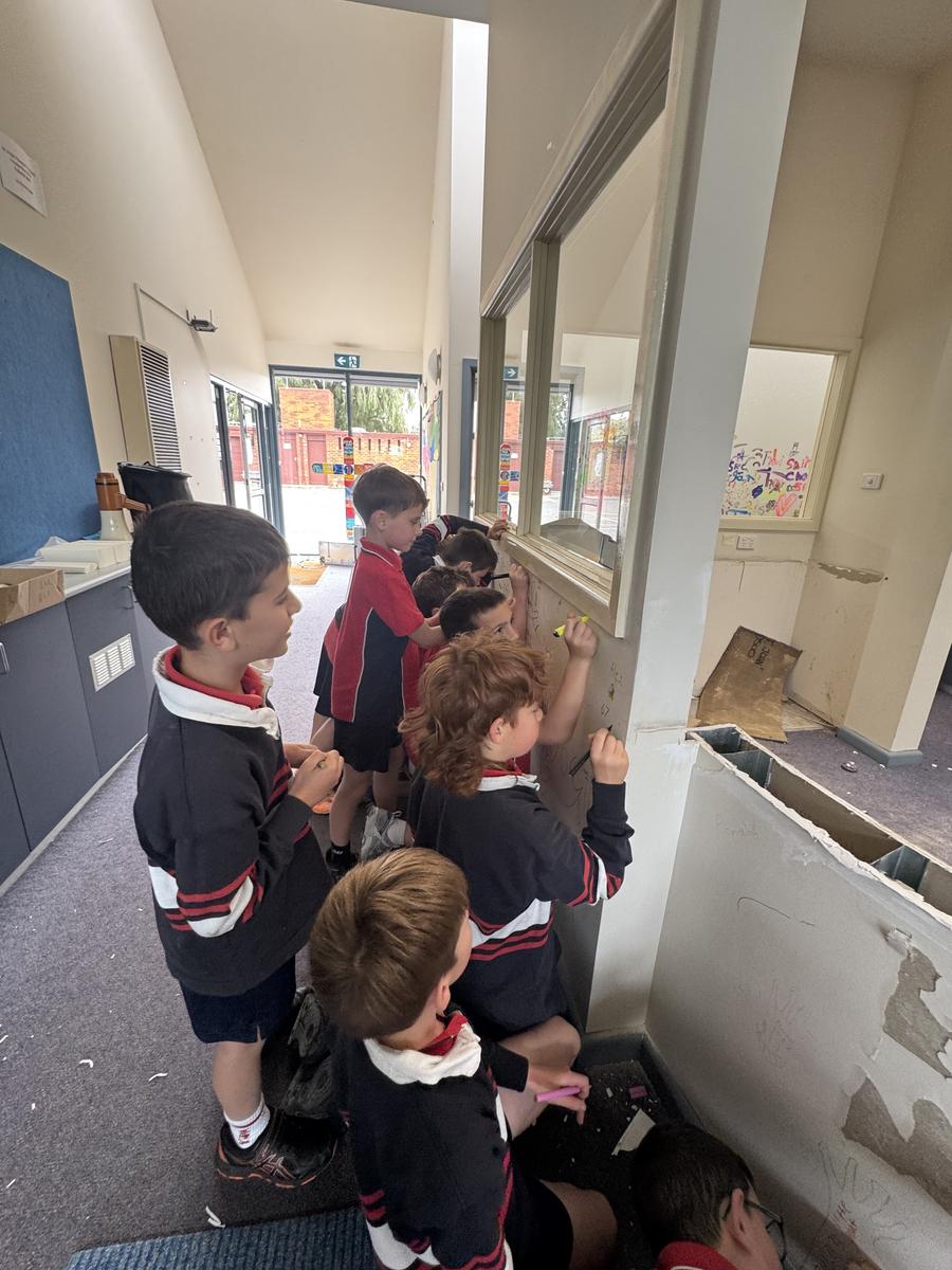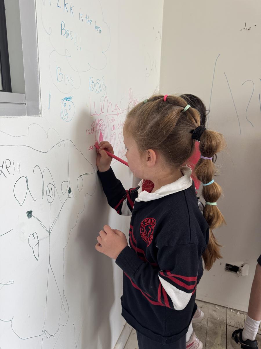 Today marked a special and sentimental moment for our students, as they were invited into the old office area to write their names and draw pictures on the walls before the space is transformed. It was a touching farewell to a part of our school’s history that the students will remember fondly.