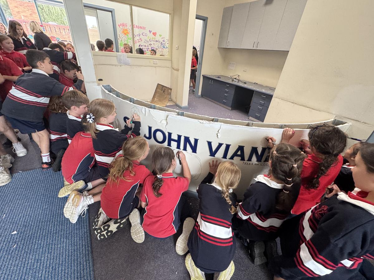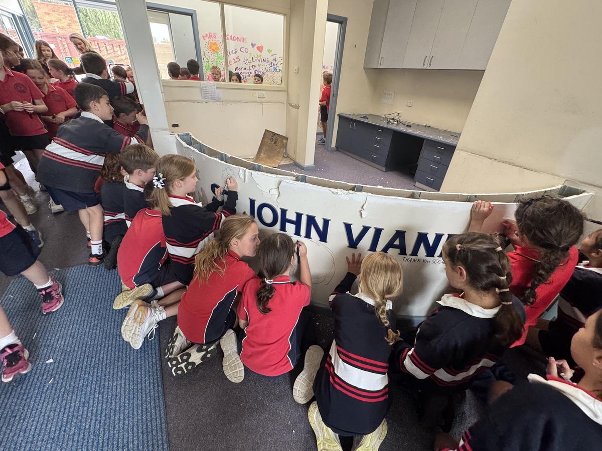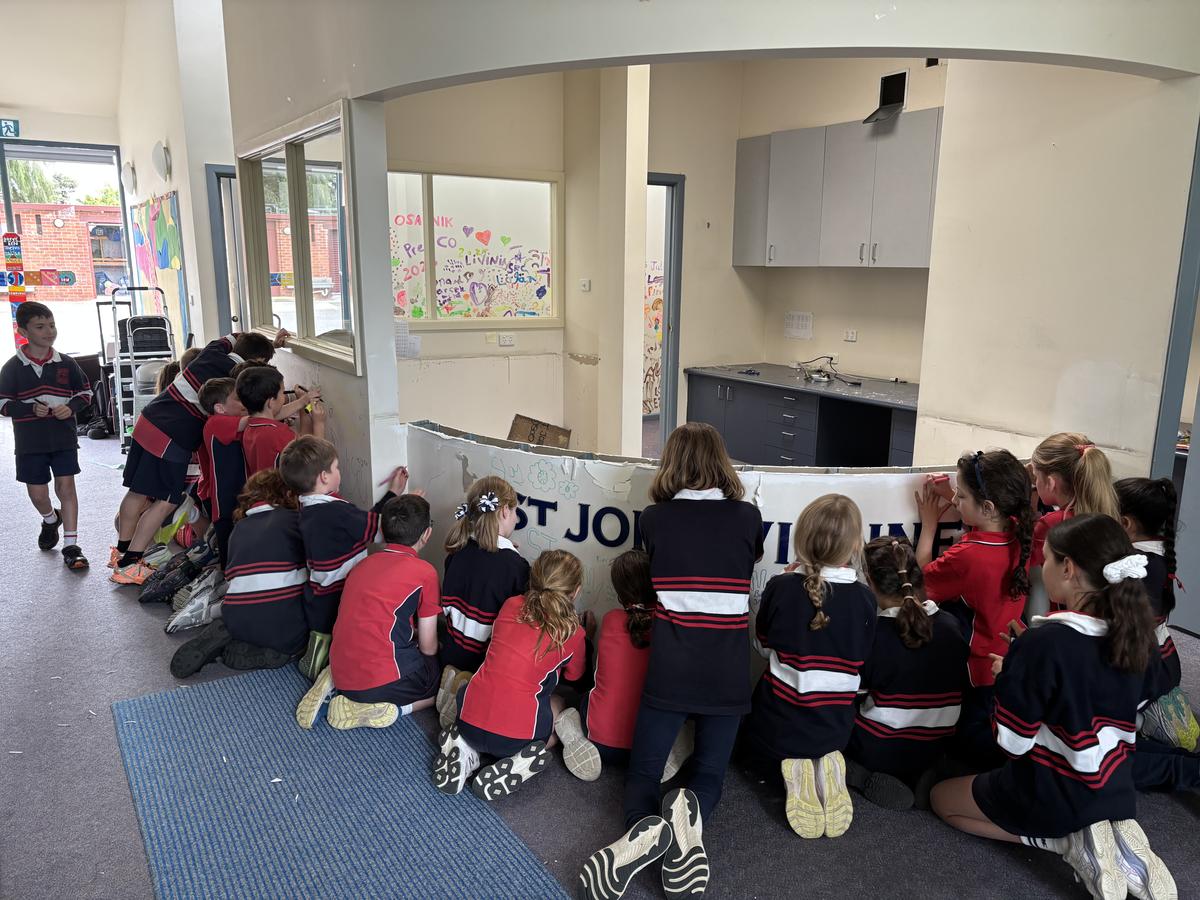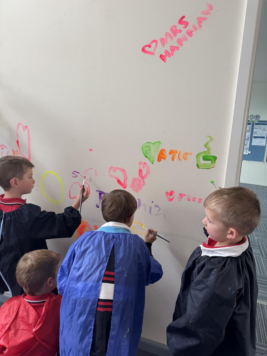 Today marked a special and sentimental moment for our students, as they were invited into the old office area to write their names and draw pictures on the walls before the space is transformed. It was a touching farewell to a part of our school’s history that the students will remember fondly.