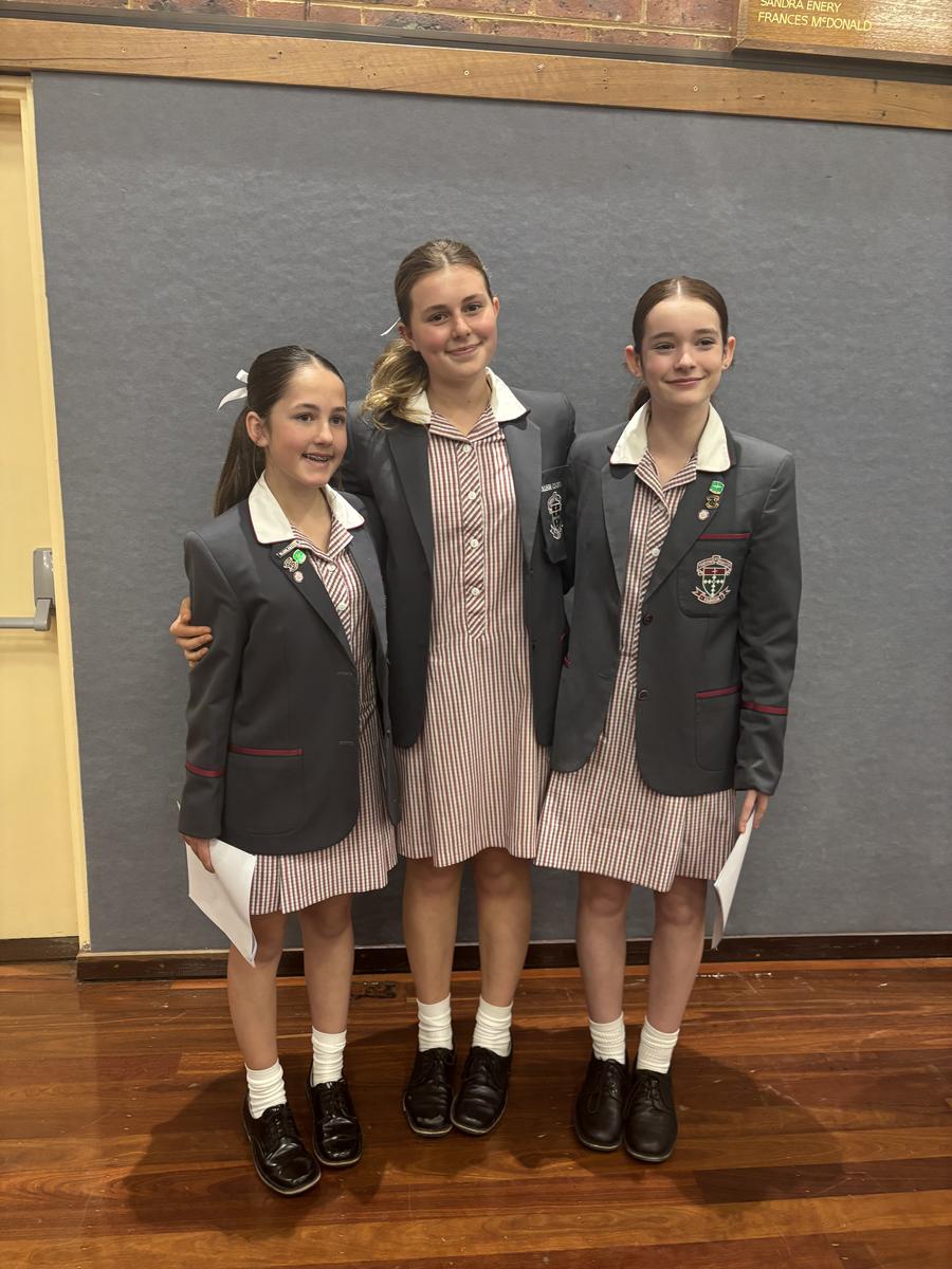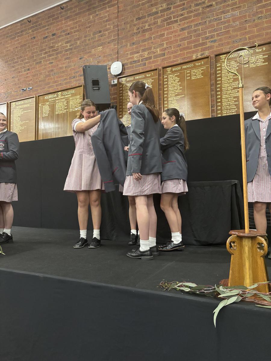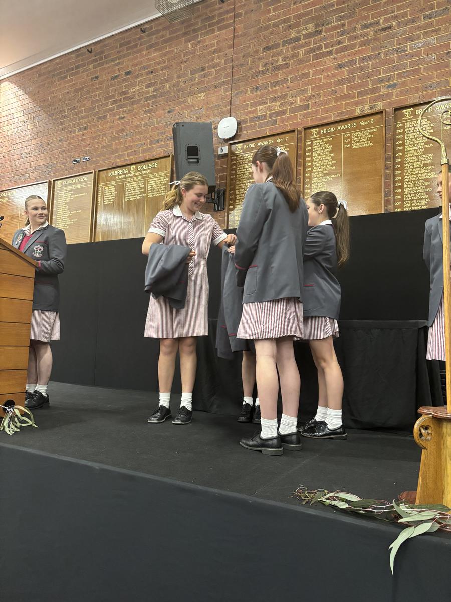 A special congratulations to former student Leila Timms, who has been appointed Co-Captain of Kilbreda College for 2026. It was particularly touching to see two current Year 7 students, Milly Camera and Tayah Donovan, both also former SJV students, present Leila with her blazer and School Captain’s badge.