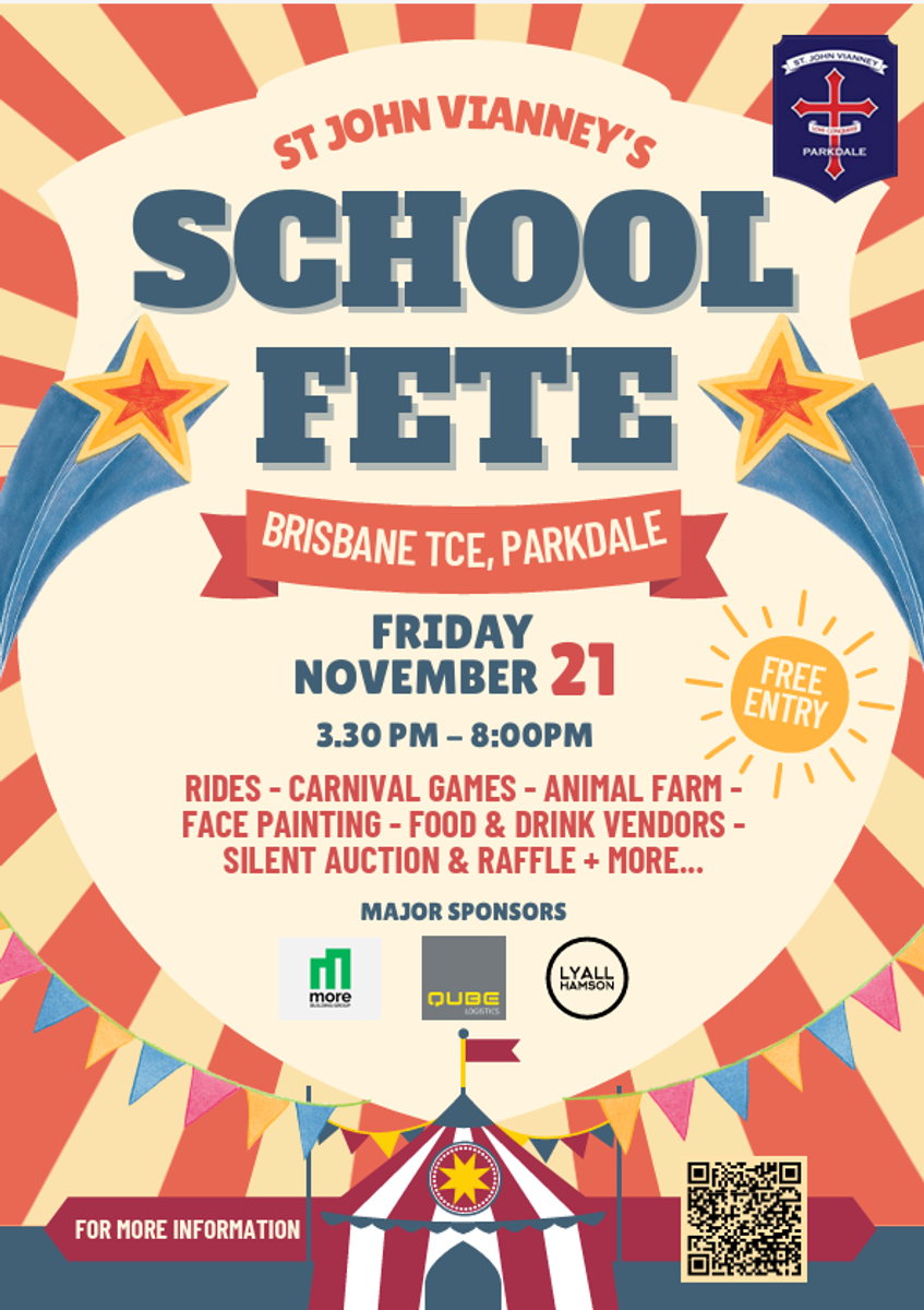 Please make sure that you check out the Fete page in the newsletter for further information on ways we require all parents to assist.