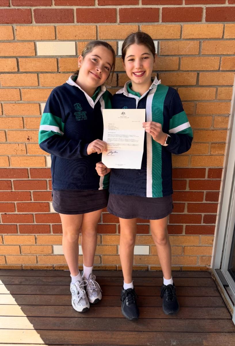 Millie and Sylvie with their letter from the Prime Minister about the gender pay gap.
