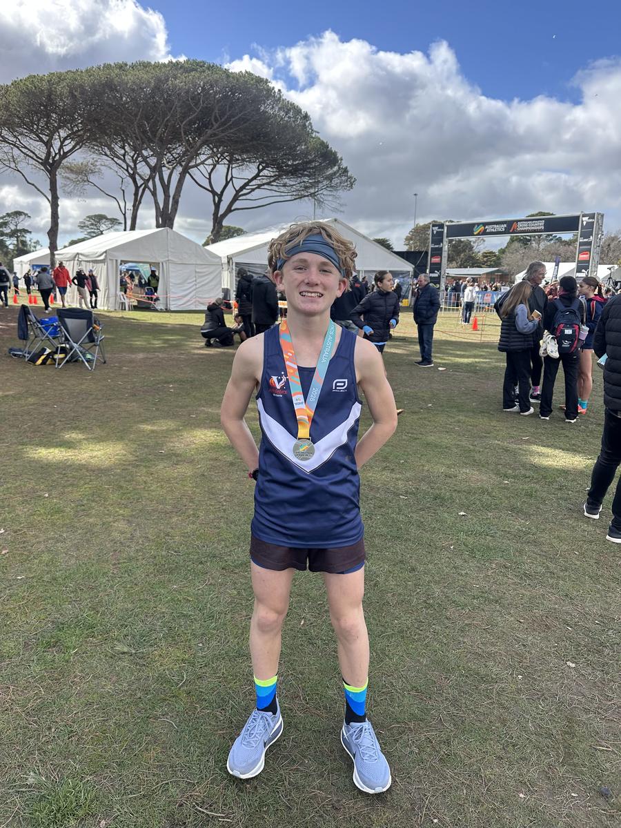 On Saturday 23 August, Year 7 student Jas Brown represented Victoria at the Cross Country Nationals for Athletics Australia in Ballarat. Competing against 79 athletes from across the country in the under 14s 3km event, Jas delivered an outstanding performance, placing 9th overall and finishing as the first member of the Victorian team across the line in his event.