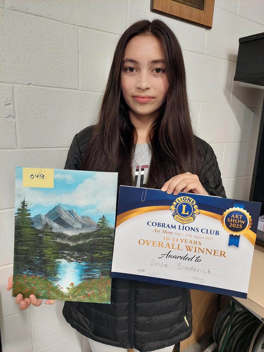 Bella Broderick was awarded the overall prize in the 10–14 years category, taking out the major $250 award with her impressive piece. Her work was selected as the best across all entries in the three sections available for this age group!