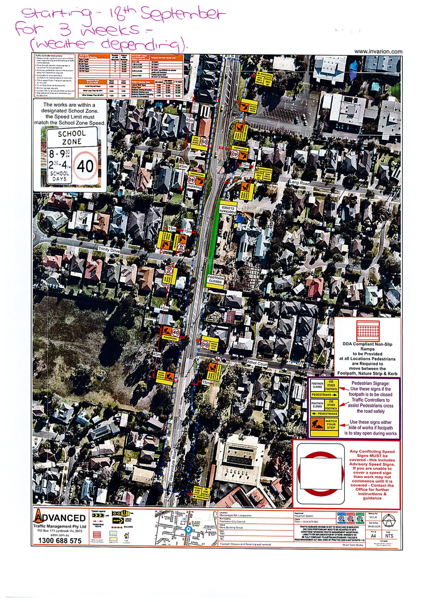 Please be aware that there will be major roadworks on Warrandyte Road starting on September 18 for a three week period.