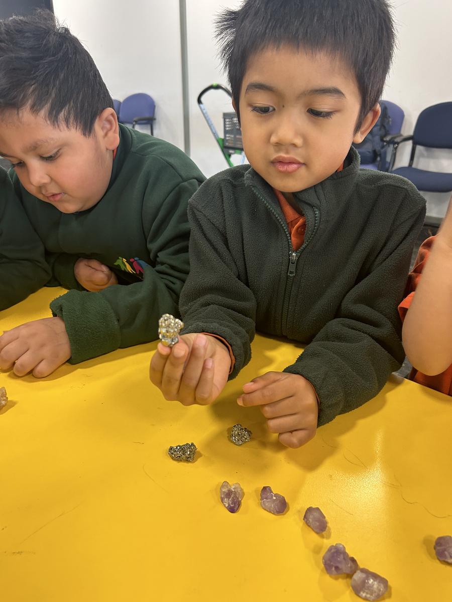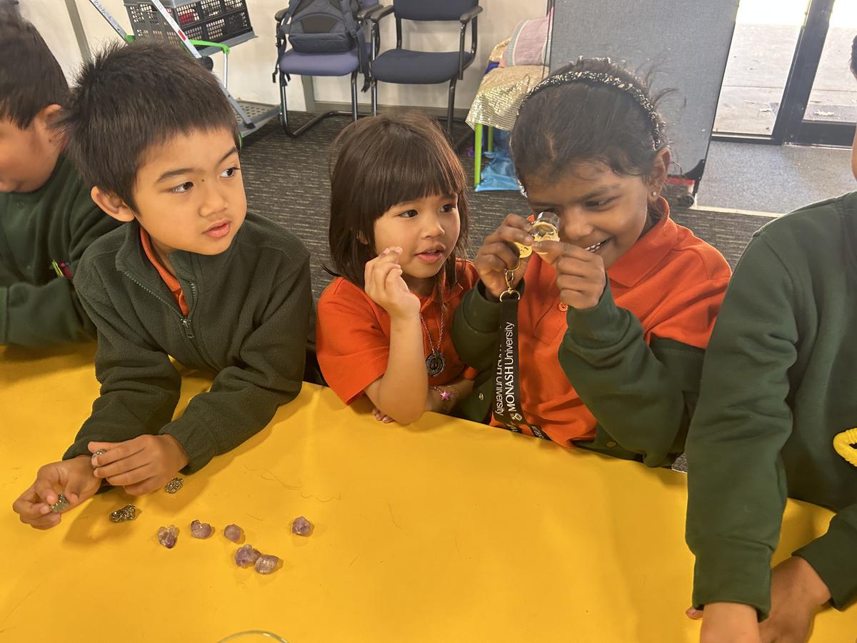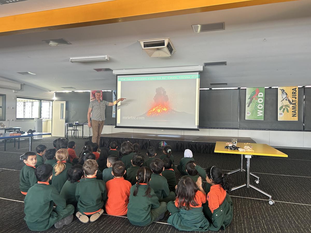 We began with a science incursion from Monash University. Students explored how volcanic eruptions affect ecosystems and weather, and had the opportunity to examine volcanic rocks and materials. They were fascinated by the idea that eruptions can shape the land and influence the environment around us.
