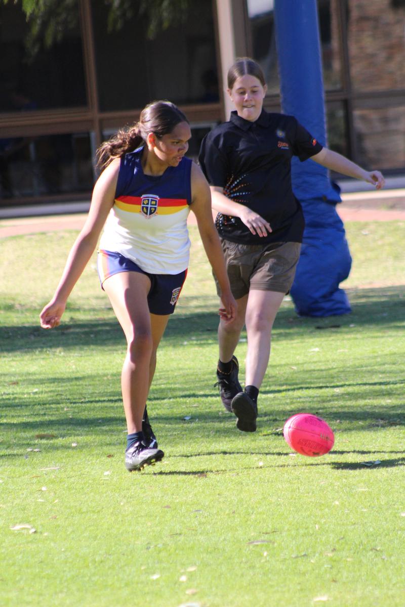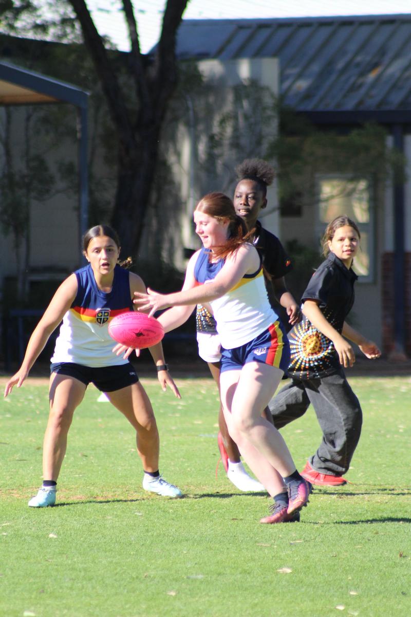 The team played two games against CMS and with a couple of trainings completed, the girls were excited to represent the College. Both games were good performances with all players fighting strongly for the ball and using high levels of skill and hard running to finish off their good work. It was really pleasing to see the senior students of Tamika Rumpff, Issy Treloar, Nellie Crellin and Skye Childs take an active role in coaching and supporting the younger students.