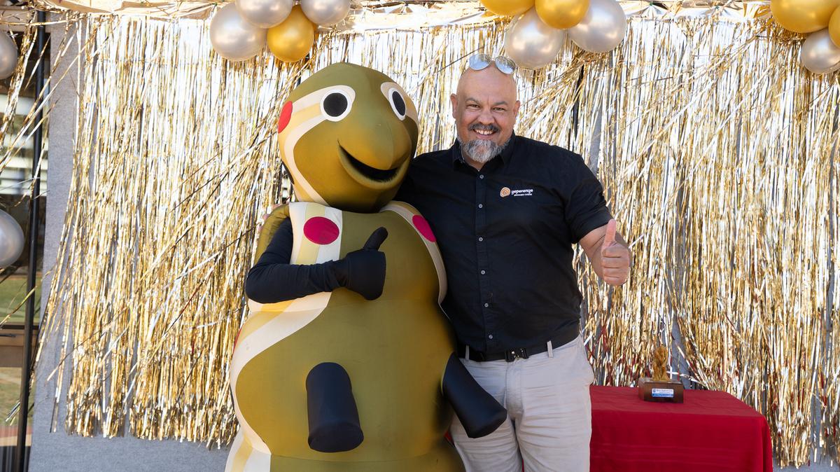 We would like to say a big thank you to Yepereneye Shopping Centre for sponsoring the Space Out Festival, Yepe the mascot and the CEO Aaron Campbell pictured below: