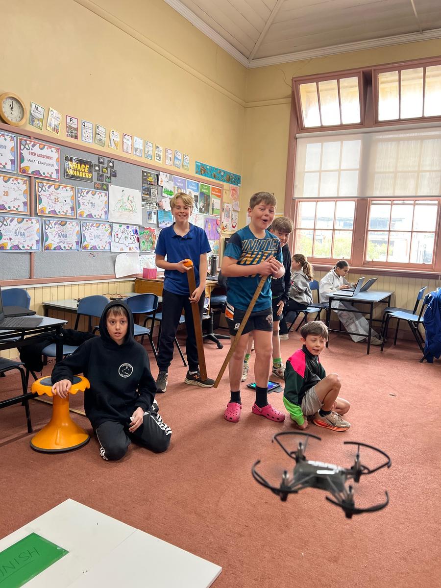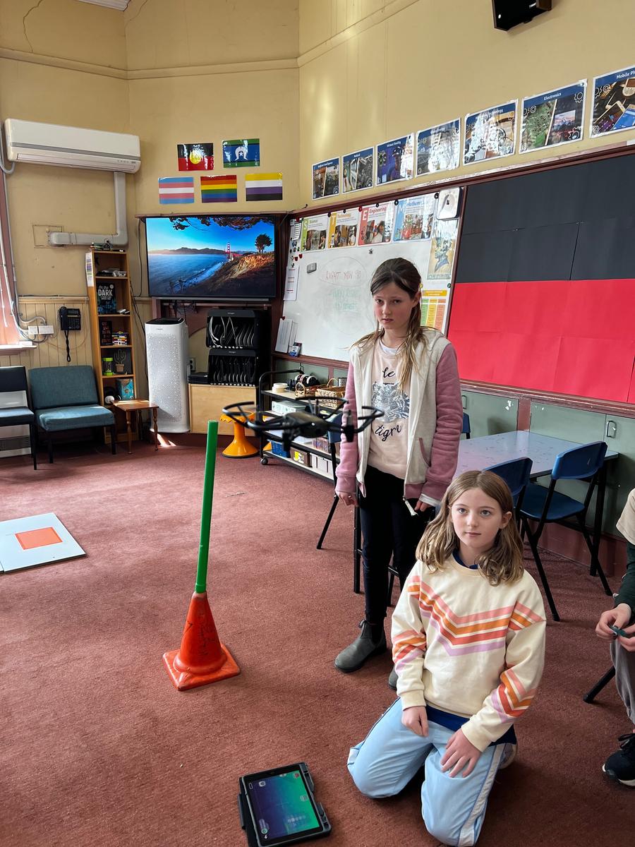 Meanwhile, our upper primary students have been tackling drone challenges in the classroom. Using block coding, they’ve programmed Tello Drones to weave through obstacles and land precisely on designated pads. Their focus, teamwork and excitement have been fantastic to see – some photos are included so you can share in their achievements.