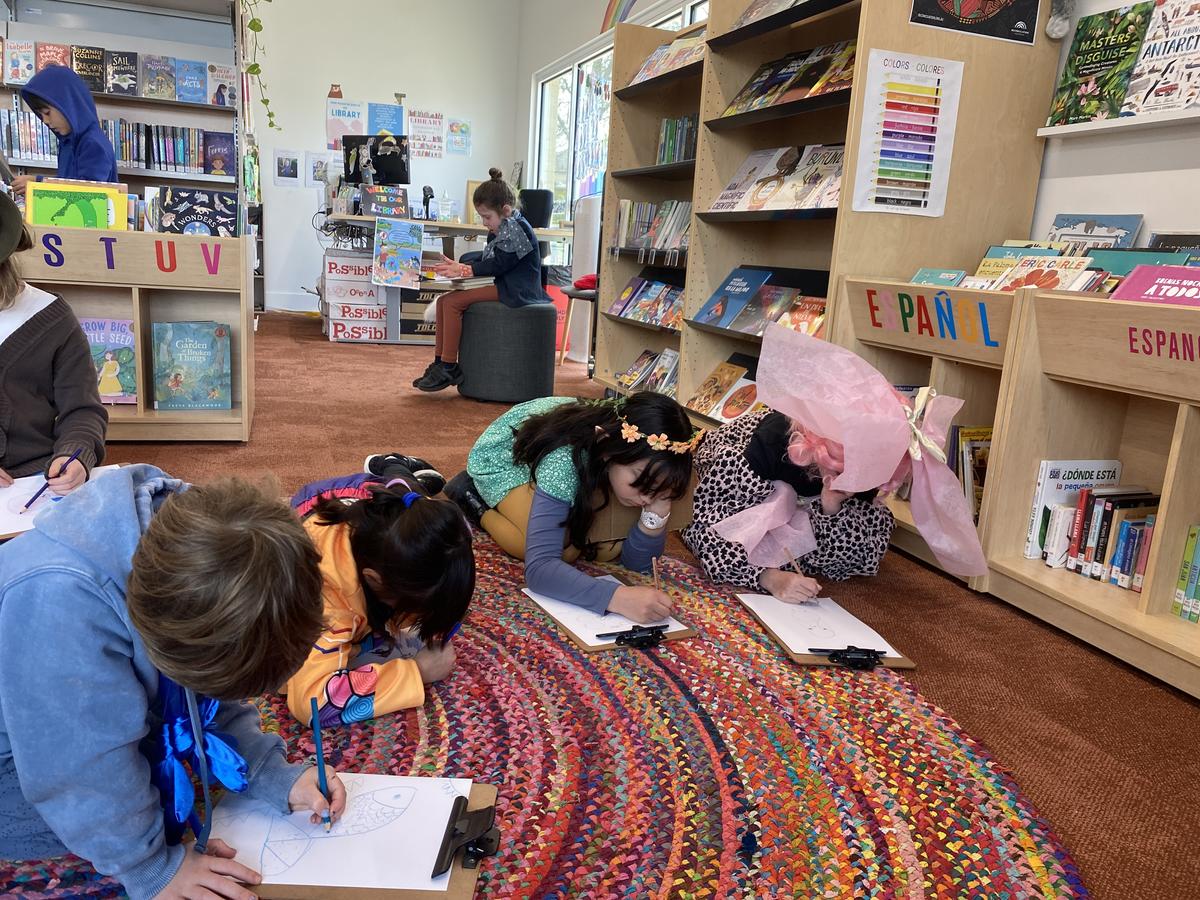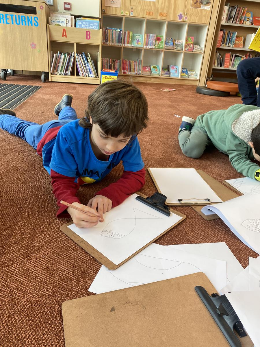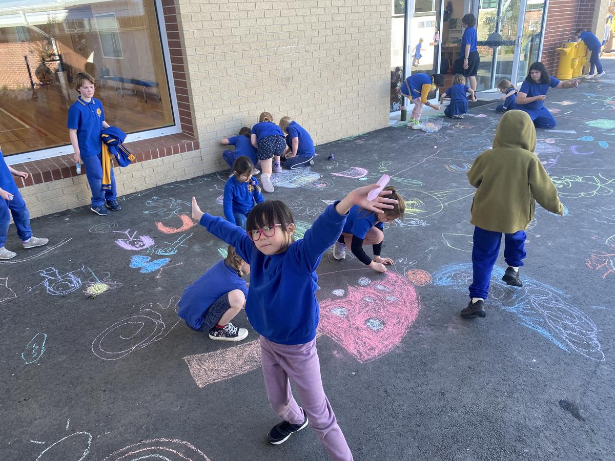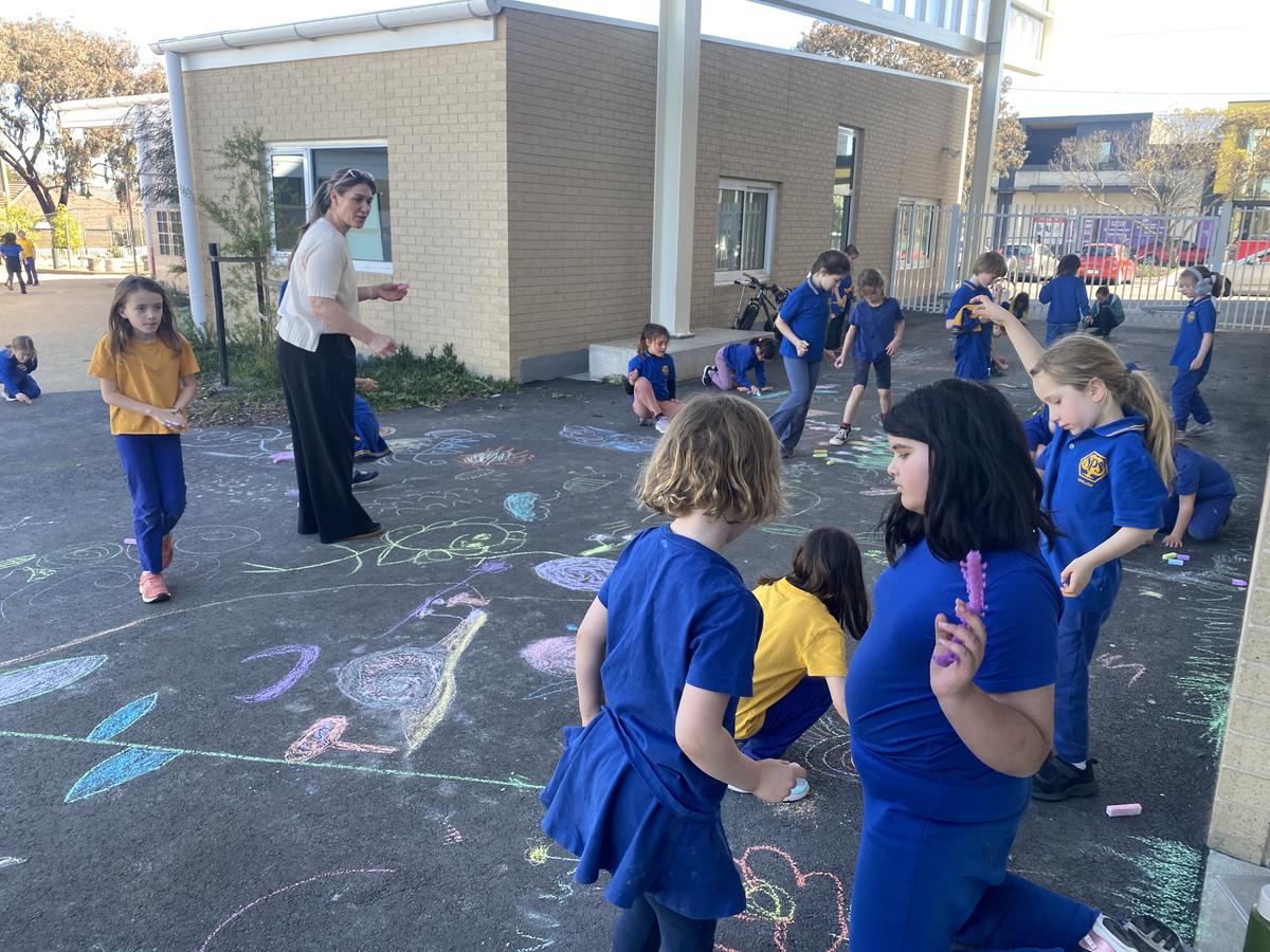BOOK WEEK was a whirlwind of colour with José, Abner and Lucinda each hosting a story-time. Lucinda’s extended beyond the library, spilling onto the asphalt which became a vibrant ‘Concrete Garden’ with the kids inspired by Bob Graham’s book and armed with chalk. Abner put on a puppet show to many rapt kids. José spent his birthday recess sharing Spanish with the kids. Special guest Marc Martin showed us how his paintings became books and then he instructed us on how to draw some cute animals from basic geometry. The kids are still searching for the remaining 5 wandering Wallies!