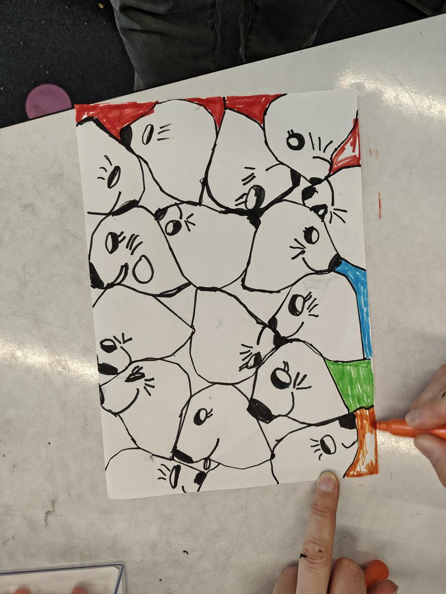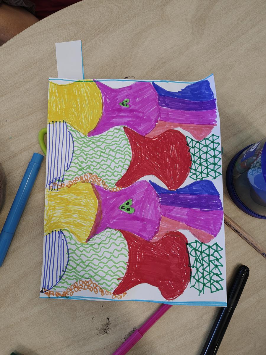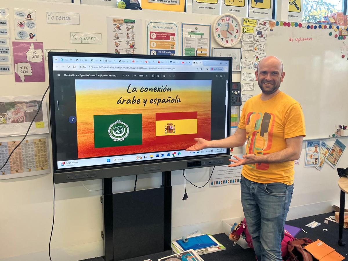 In our last session, the activity was created and lead by Matt, a parent from one of those non-Spanish speaking families. He did an amazing job putting into practice what he has been learning in Duolingo. The topic was “La conexión Árabe y Española” (The Arabic and Spanish connection). We learned that there are more than 4000 words in Spanish that come from Arabic. Matt, using an amazing level of Spanish, did a presentation about the connection’s history and he taught us how to make tessellations to replicate the stunning Islamic artwork found on the mosaic at the Alhambra.