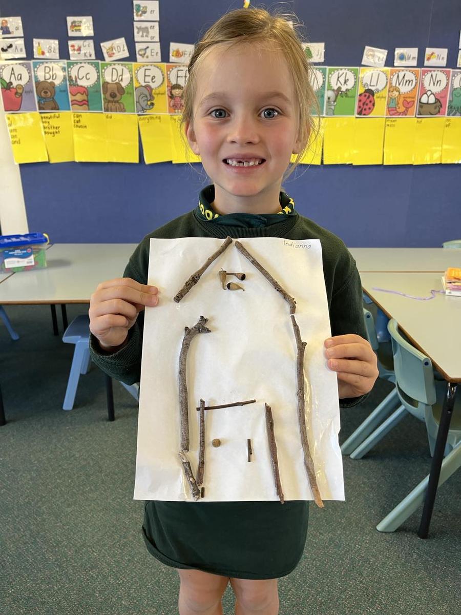 In Kindergarten we plan Aboriginal perspectives in our curriculum in everyday teaching and not only on significant dates or during cultural celebrations. An example of this is during a recent mathematics unit where we took students outside as a way of connecting to Country. Students identified two-dimensional shapes in our environment and then used natural objects to recreate them.