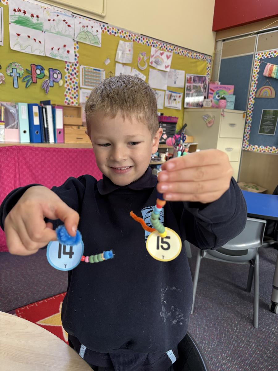 In Maths, over the past two weeks we have been learning about numbers 11-20! We have been doing lots of recognition activities, including matching numbers and collections of objects! Here are some photos of some games we played. We also did some bead threading and counted how many beads we were putting onto the pipe cleaners.