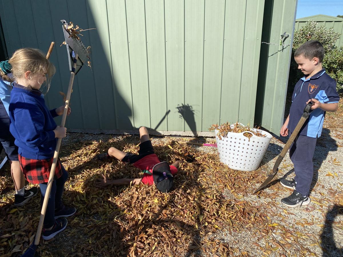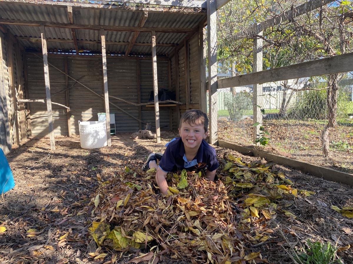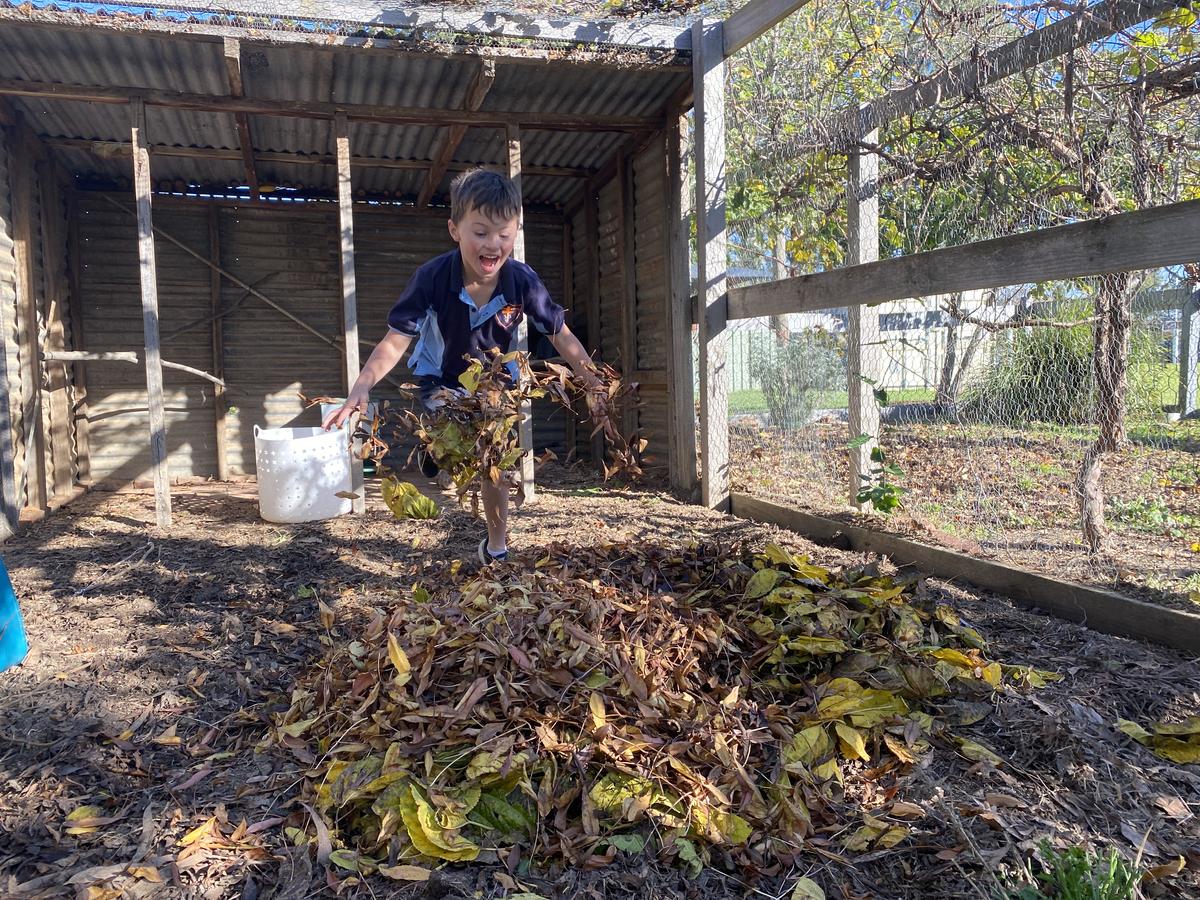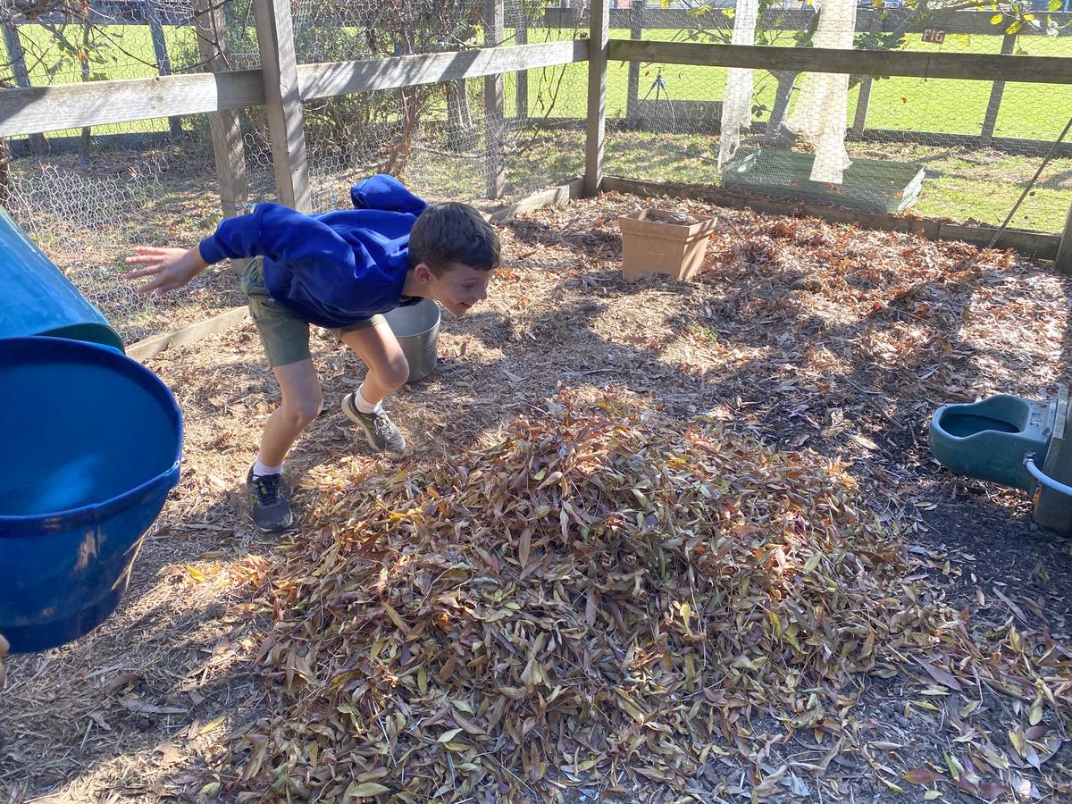 Autumn leaves are a great resource to collect for our chicken's scratching yard and compost pile, and lots of fun to pile up and jump on!