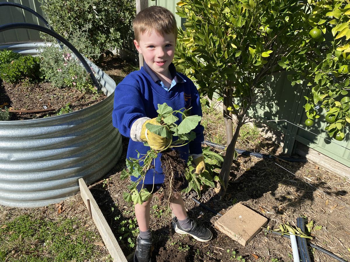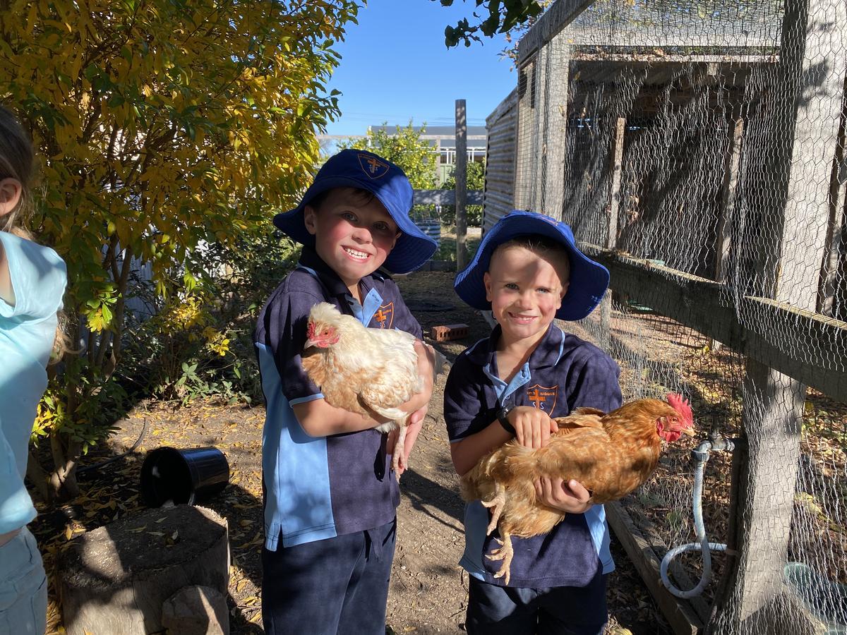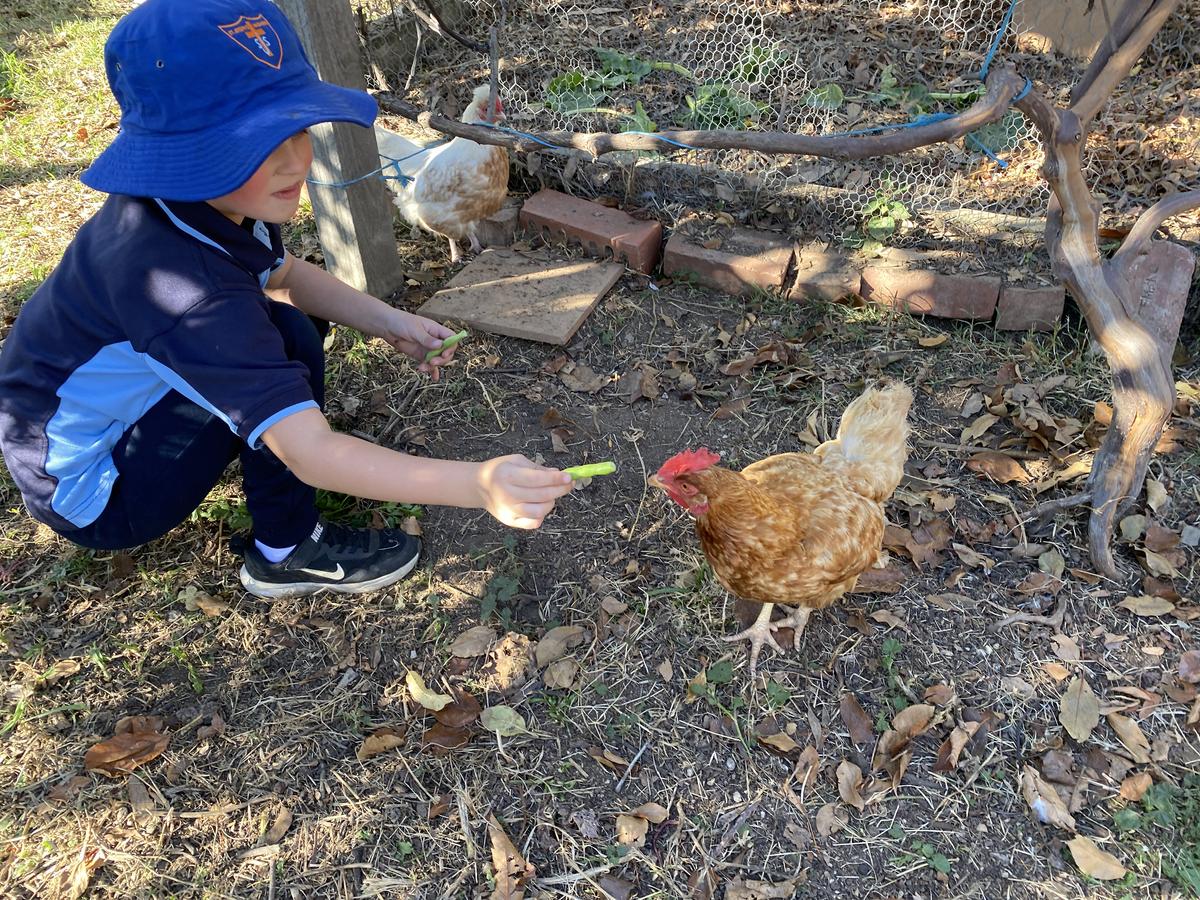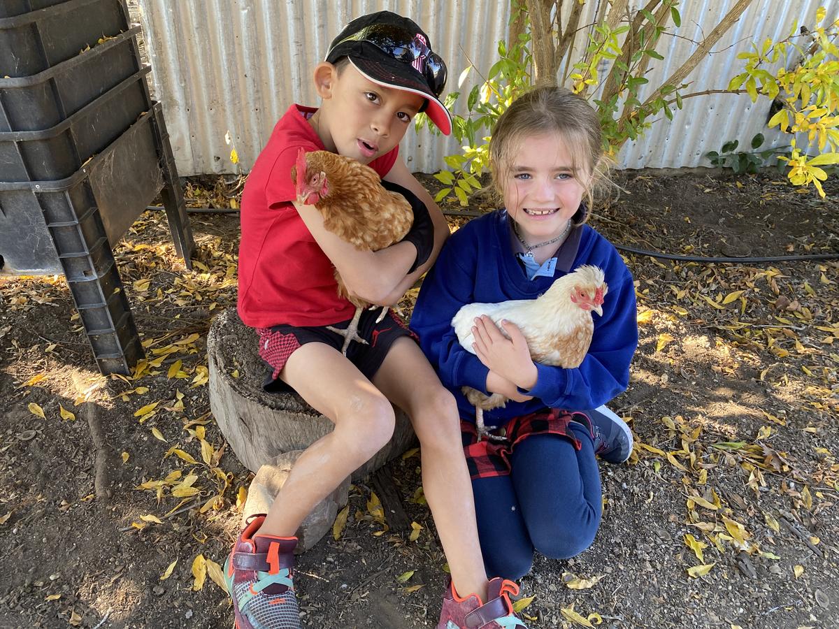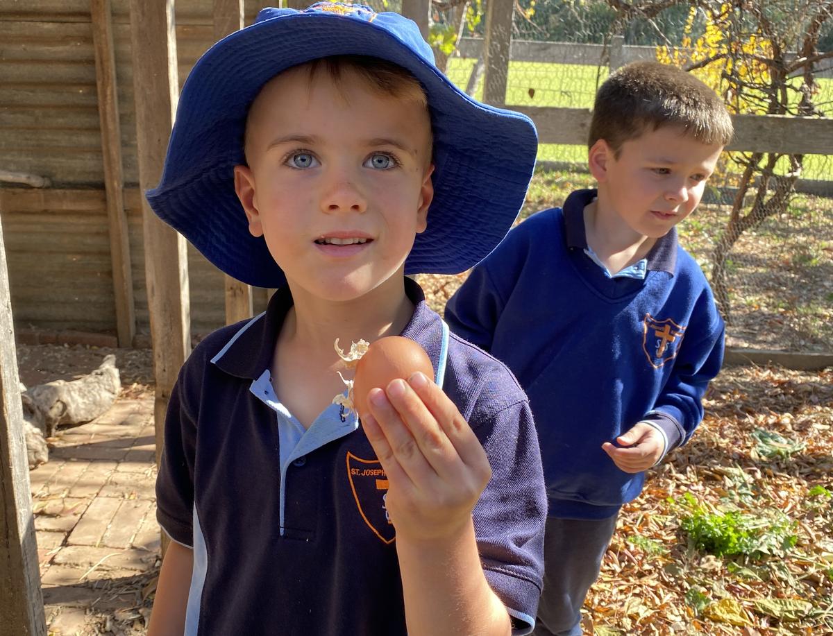 Our chickens are still gifting us with eggs. There's nothing more exciting for students like Max to find an egg, especially one they saw being laid and feels warm to touch.