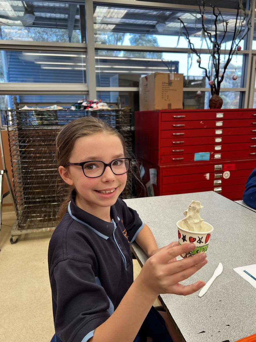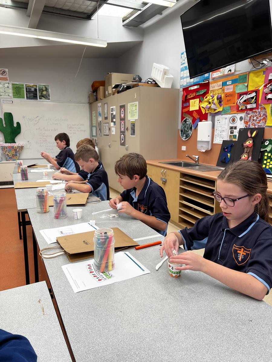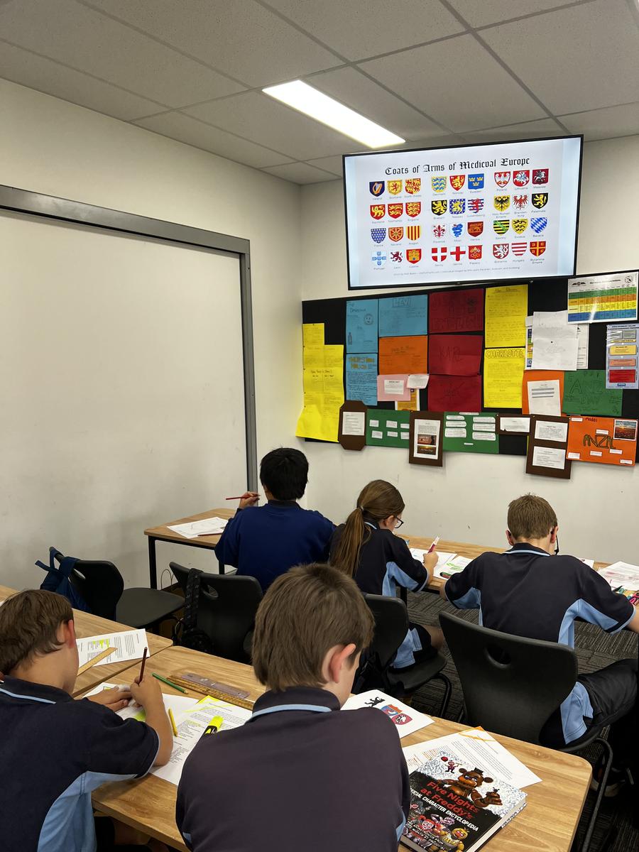 The learners blew me away with their confidence, enthusiasm, and can-do attitude during their high school experience day. They engaged in four different high school lessons, starting with English, where they delved into character traits and crafted paragraphs expressing their ideas. Next, they immersed themselves in Visual Arts, celebrating diverse cultures by creating striking patterns using lines, shapes, and colours. Their highlight was designing and planting clay cacti into their small pots. Lunchtime brought varied experiences, with some enjoying the relaxed high school yard atmosphere while others found the absence of a playground baffling. In Maths, they explored statistics, probability, and graphing, before delving into Medieval history in Humanities, focusing on coat of arms. Creativity shone as they designed their own shields with mottos, symbols, animals, and colours.