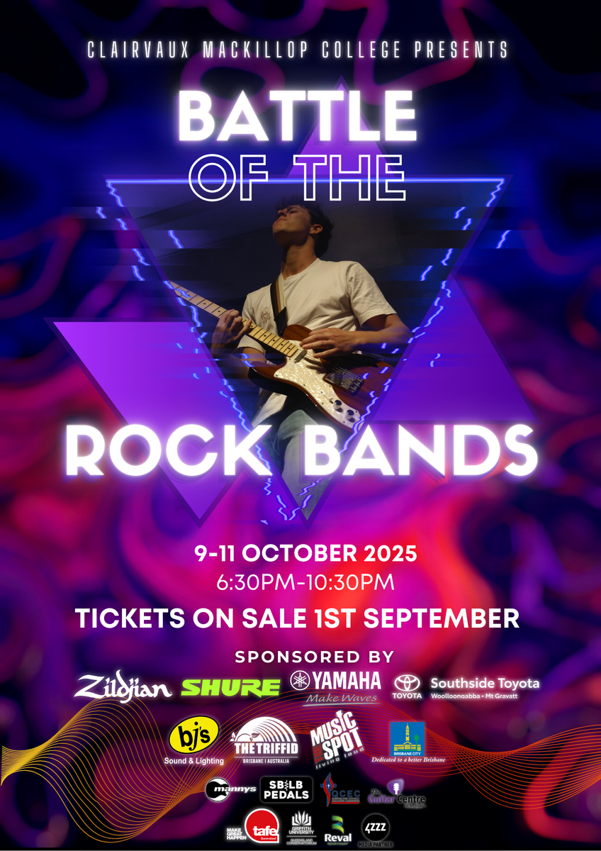 The College’s Year 12 student band The Waiting List will be representing the college at the annual Clairvaux MacKillop Battle of the Rock Bands this coming Thursday starting at 6:30pm.