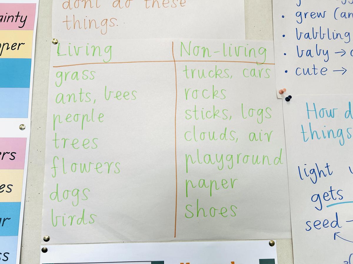 This term in Discovery, the Grade 1/2s will be learning about the way that living things grow and change. We started our topic by noting the range of living and non-living things we can observe in our own school environment.