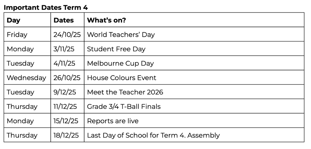 We hope all of our families had a wonderful break over the holidays and is feeling refreshed for the busy and exciting term ahead. Term 4 will be full of celebrations, learning experiences, and special events as we approach the end of the school year.