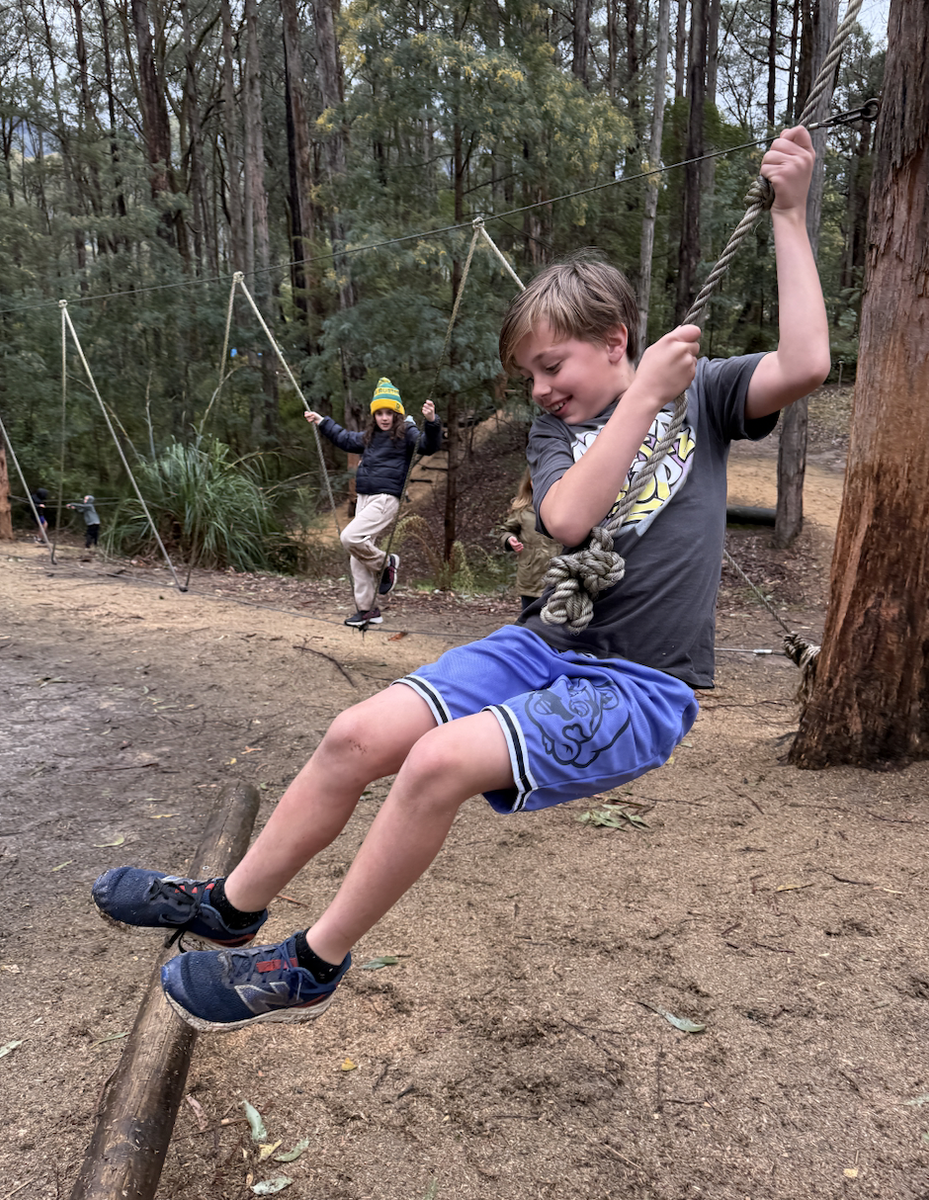 Camp was really good. It was really fun to sleep in a cabin with my friends. I enjoyed finding the gold in the Yarra river. I liked the giant swing, archery and flying fox. Doing the obstacle ropes course was also really fun.
