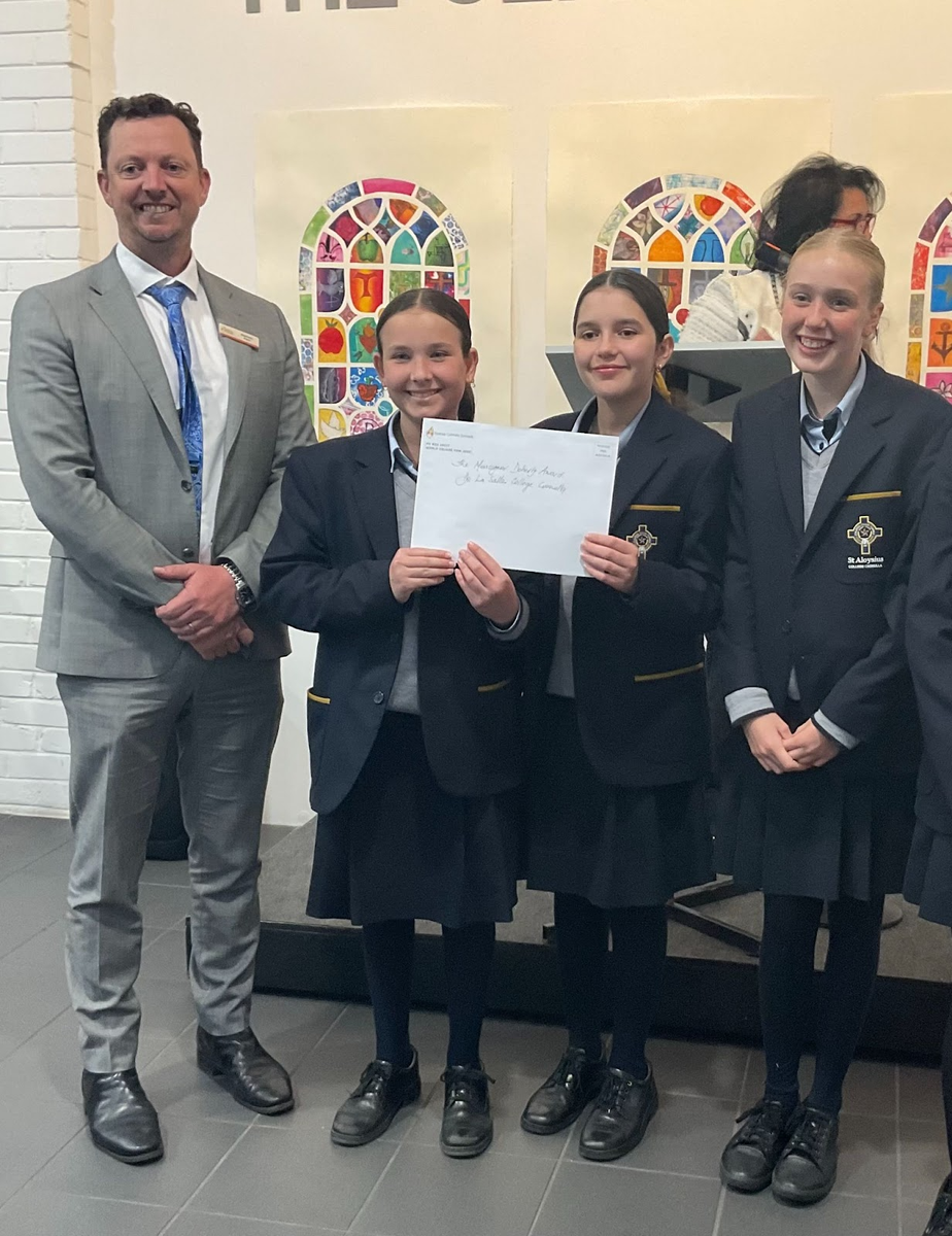 On 5 September, students represented our College to receive the prize and award at the Clancy Religious Exhibition Opening at ACU. Students were inspired by contemporary artist Shepard Fairey and incorporated their own local area of Cronulla into the landscape as well surrounding patterns of Indigenous culture in the halo of St Aloysius. Well done to our flourishing artists at the College.