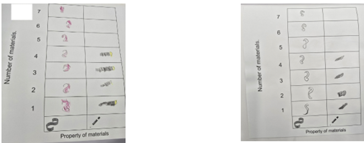 This week, our Prep students have been learning to draw a pictograph independently. They counted the rigid and flexible materials shown on a laminated sheet and then drew the correct number of each material in their graph.