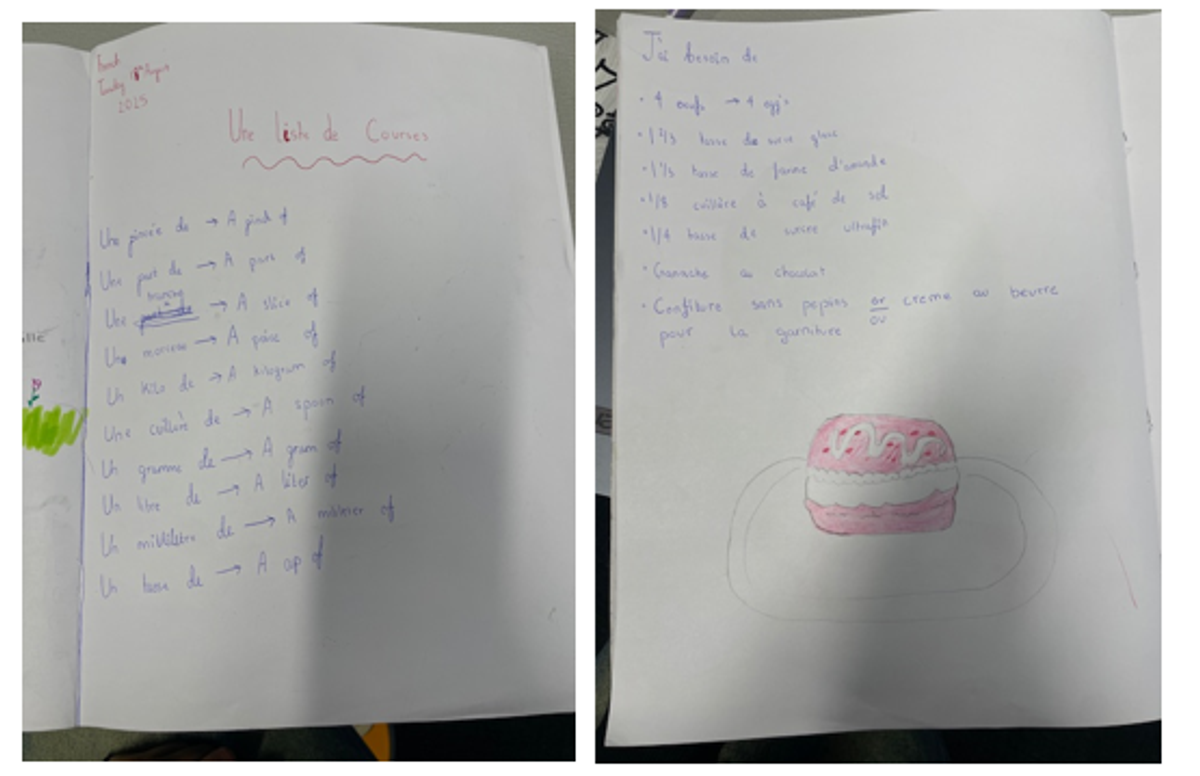 In Grades 5 and 6, students focused on food quantities in French and put their learning into practice by researching on recipes. We loved seeing how they applied their knowledge of quantities when translating a recipe from English to French. They also completed a written assessment, and it was great to see how much they have progressed.