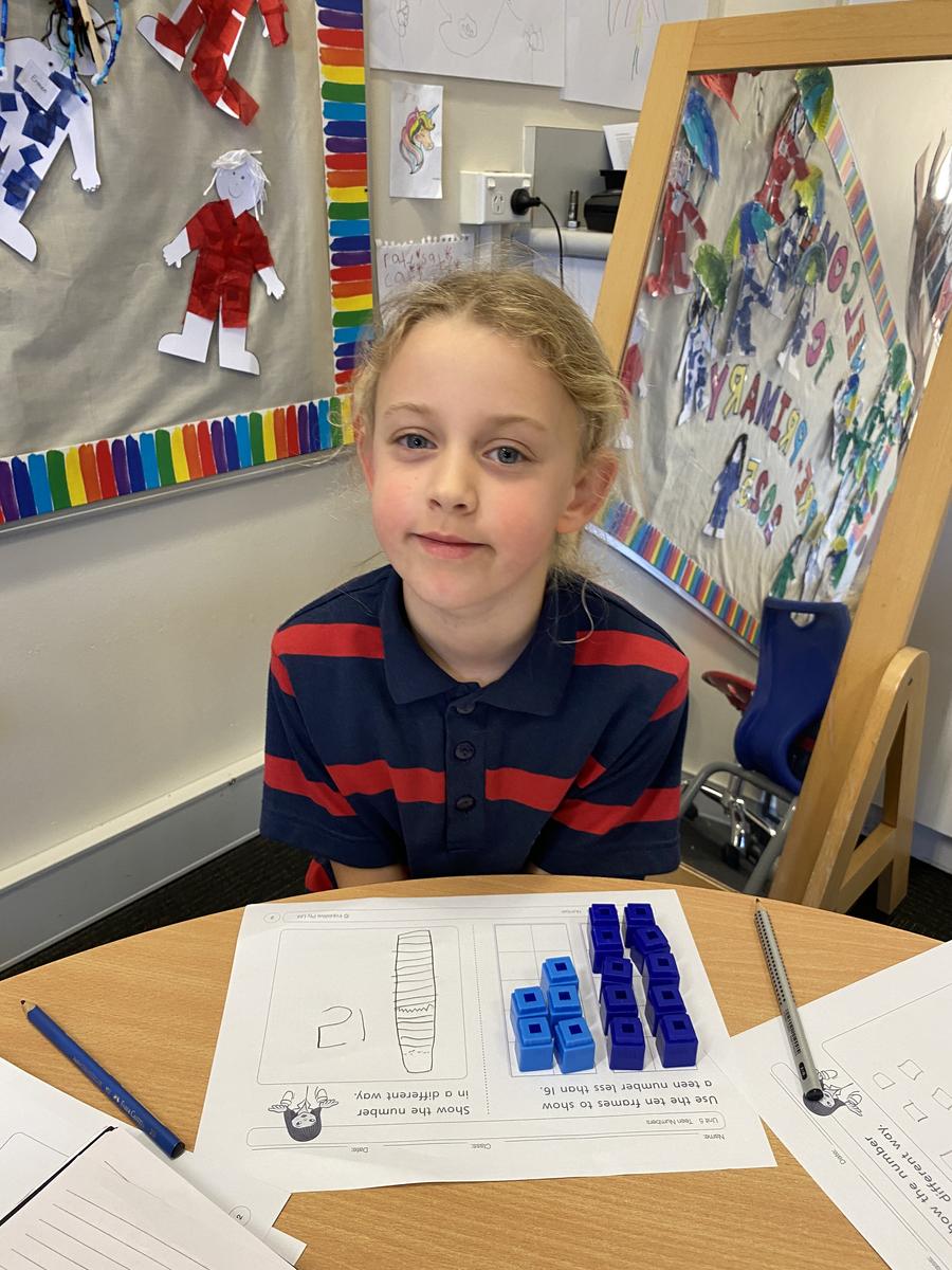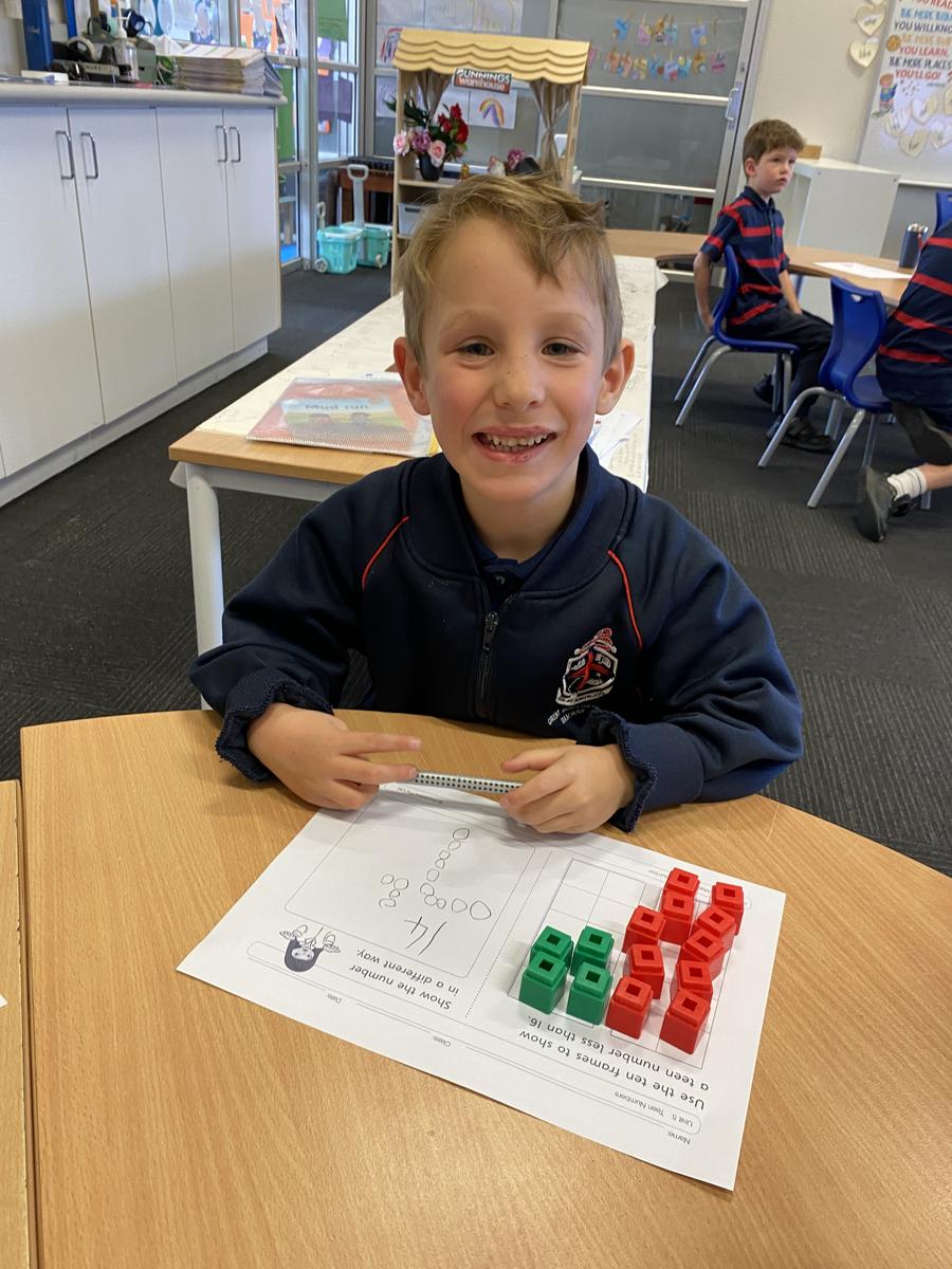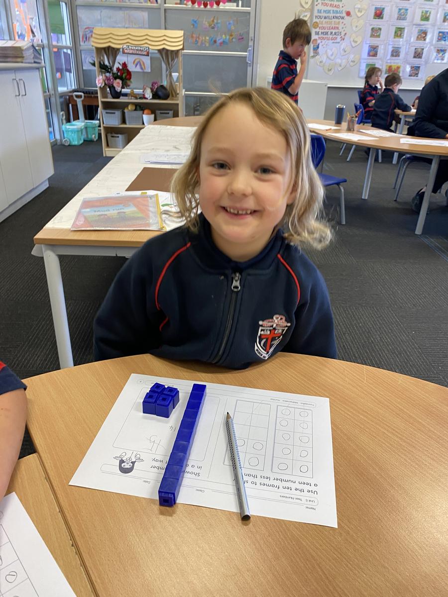 This week, Pre-Primary has been learning how to make and write teen numbers in Mathematics. Did you know that a teen number is 10 and some more? For example, 13 is 10 and 3 more. To help us learn how teen numbers are made, we have been playing a game called Build a Tower. We roll the dice and collect the number of blocks shown. When we get ten blocks, we can build a tower of ten. After four rolls, we have to write the number of blocks we have collected.