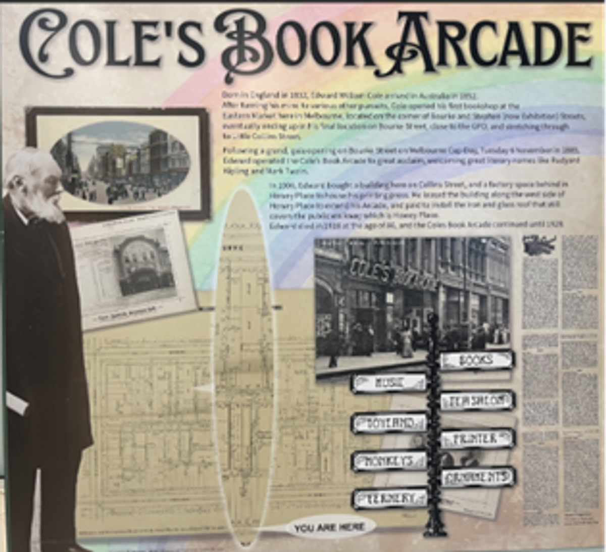 Dymocks in Collins Street has some signs and information about the original Coles Book Arcade.
