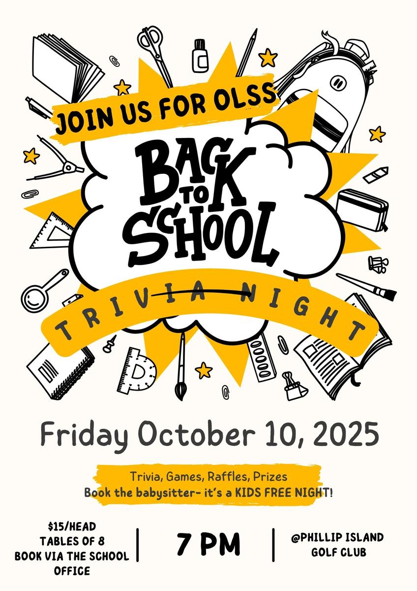 BACK TO SCHOOL TRIVIA NIGHT-FRIDAY 10th October 7:00pm @Phillip Island Golf Club