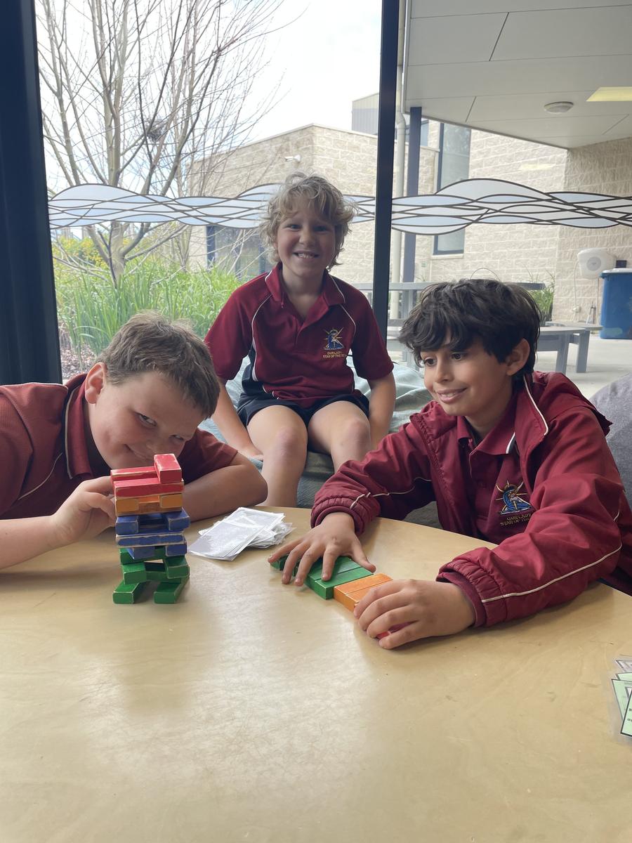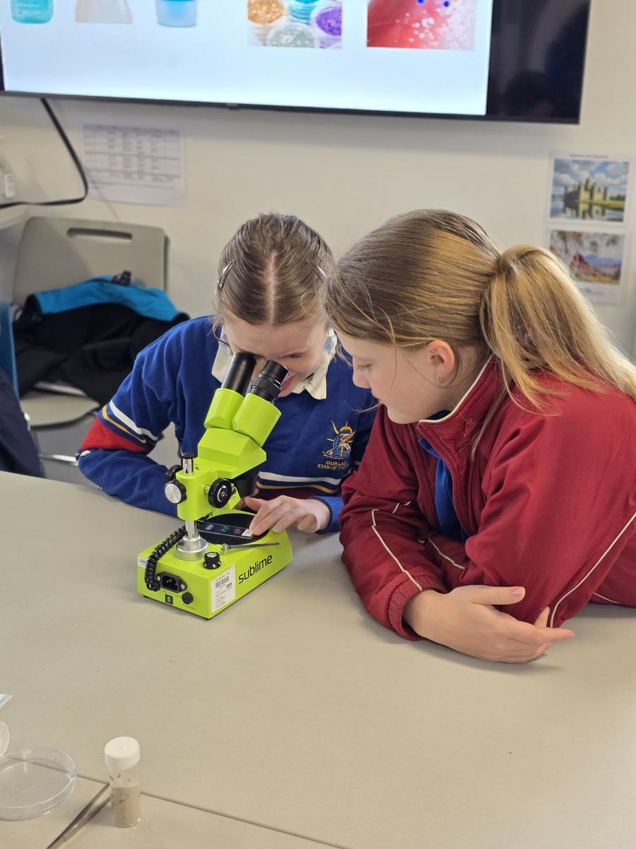 They became “experts” as they filtered sand samples, extracted microplastics, and used microscopes to identify them. Using their knowledge of food chains, students then played Marine Ecosystem Jenga—a game where positive actions help build the tower, while threats to the ecosystem cause it to collapse. This powerful activity highlighted the fragility of real ecosystems and the impact of human choices.