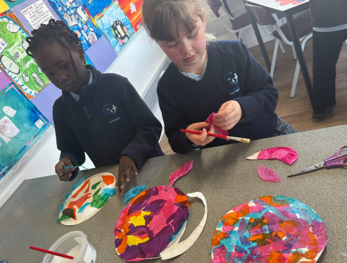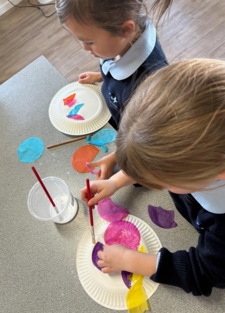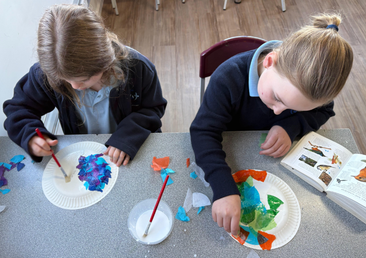 Foundation, grade 1 and 2 students have been making a wonderful mess in the Art room when playing and experimenting with collage this term. They had fun tearing up coloured tissue paper to re-arrange, layer, join and create their own personal collage pieces. Students expressed themselves beautifully through the colours they thoughtfully selected for their artwork. They’re now busy using their collage art pieces to build, model and construct their own three-dimensional sculptures. Stay tuned…