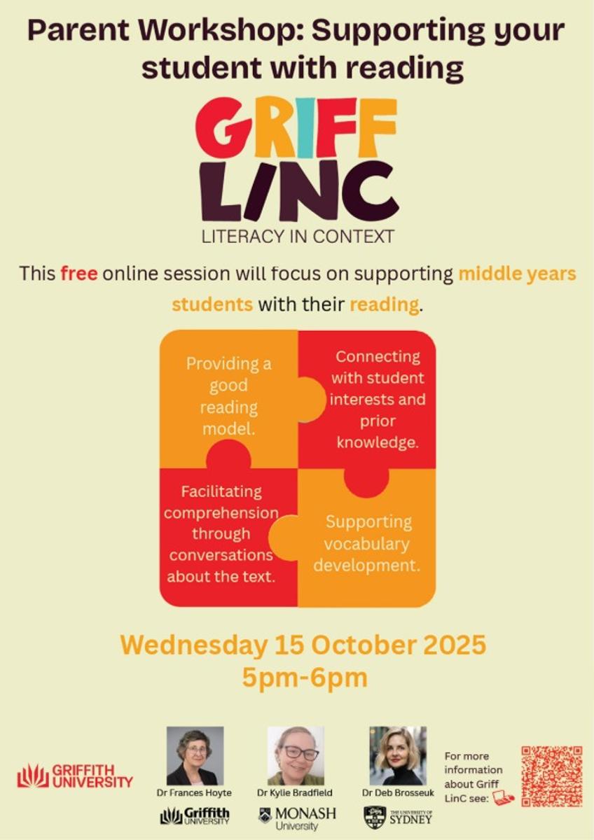 If you have ever felt puzzled over how to support your child’s reading, then this workshop, with a focus on middle years students, will offer you a variety of helpful strategies.