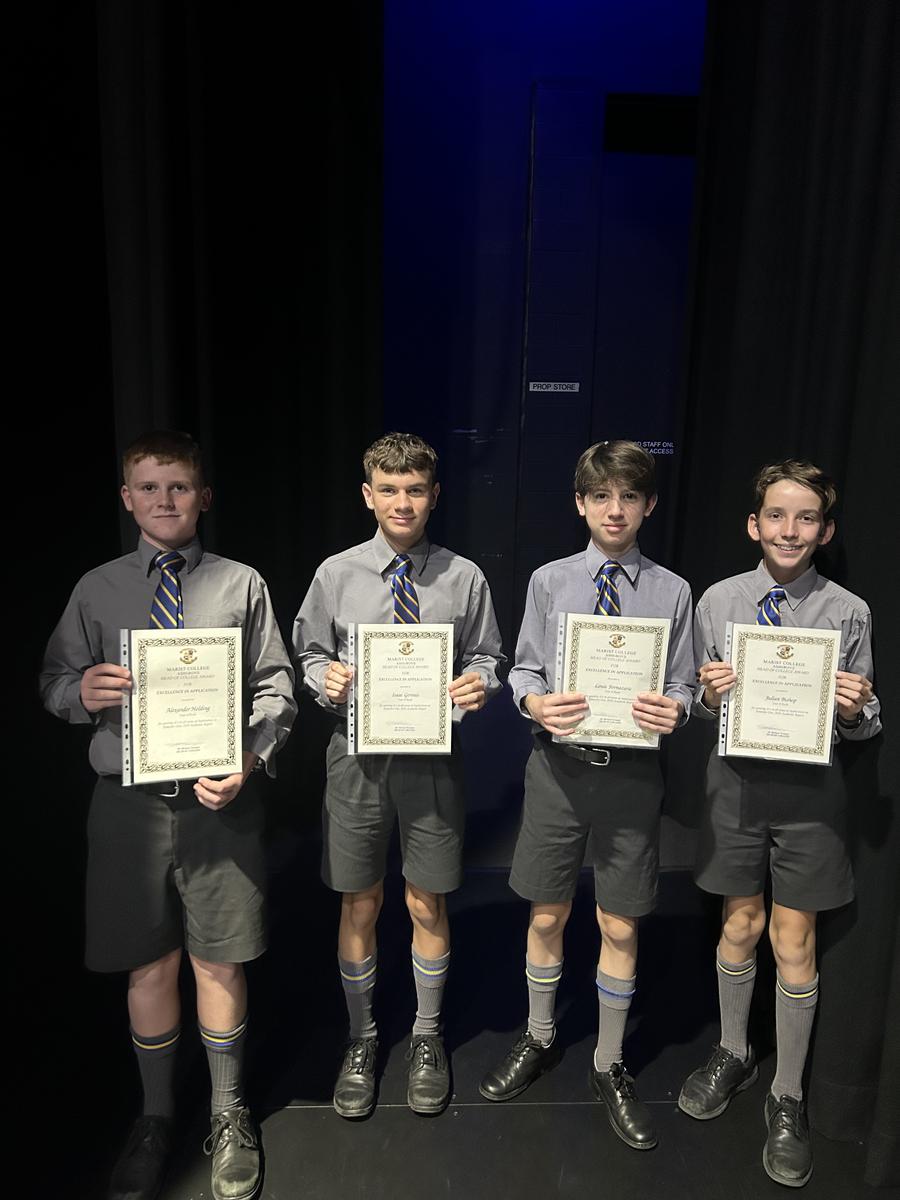Year 7 | Beau Ballinger, Danny Carey, Jai Cranswick, Dom Guinea | Rhys Adams, Callem Bambling, Loghan Zhang | Nate Chataway, Adam Leavey, Fred Little, Harry McConnell |